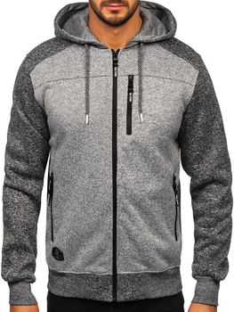 Szürke férfi pulóver-dzseki kapucnival Bolf TC1219