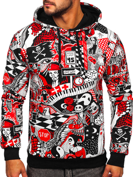 Férfi pulcsi nyomattal és kapucnival piros színben Bolf 141035