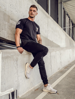 Fekete kapucnis férfi pulcsi cirkóniás mintával Bolf HM566
