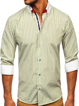 Hosszú ujjú csíkos férfiing zöld színben Bolf 20727