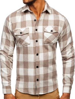 Hosszú ujjú férfi flaneling bézs színben Bolf 20723