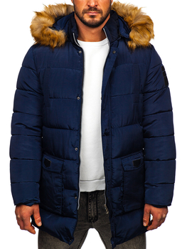 Sötétkék hosszú steppelt férfi téli dzseki Bolf 6477