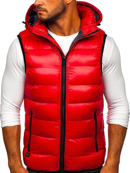 Piros férfi steppelt mellény kapucnival Bolf LY36A1
