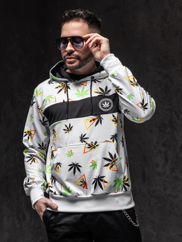 Fehér mintás férfi pulóver kapucnival Bolf HM631A