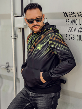 Fekete-zöld mintás férfi pulcsi kapucnival Bolf HW2320