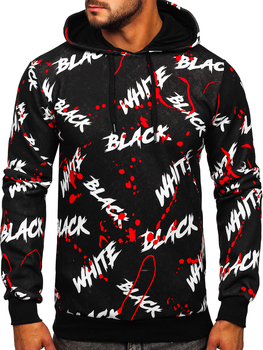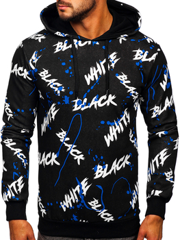 Fekete kapucnis férfi pulóver kenguruzsebbel és mintával Bolf M286