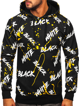 Fekete kapucnis férfi pulóver kenguruzsebbel és mintával Bolf M278