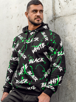 Fekete kapucnis férfi pulóver kenguruzsebbel és mintával Bolf M276