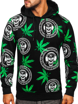 Férfi pulcsi nyomattal és kapucnival fekete-zöld színben Bolf 141006