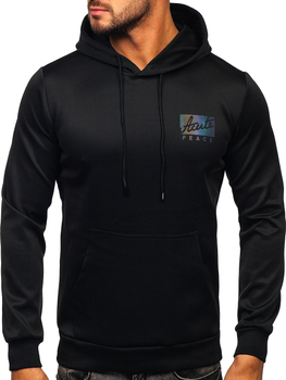 Fekete színű férfi pulcsi nyomattal és kapucnival Bolf HM517