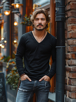 Fekete férfi hosszú ujjú felső minta nélkül
