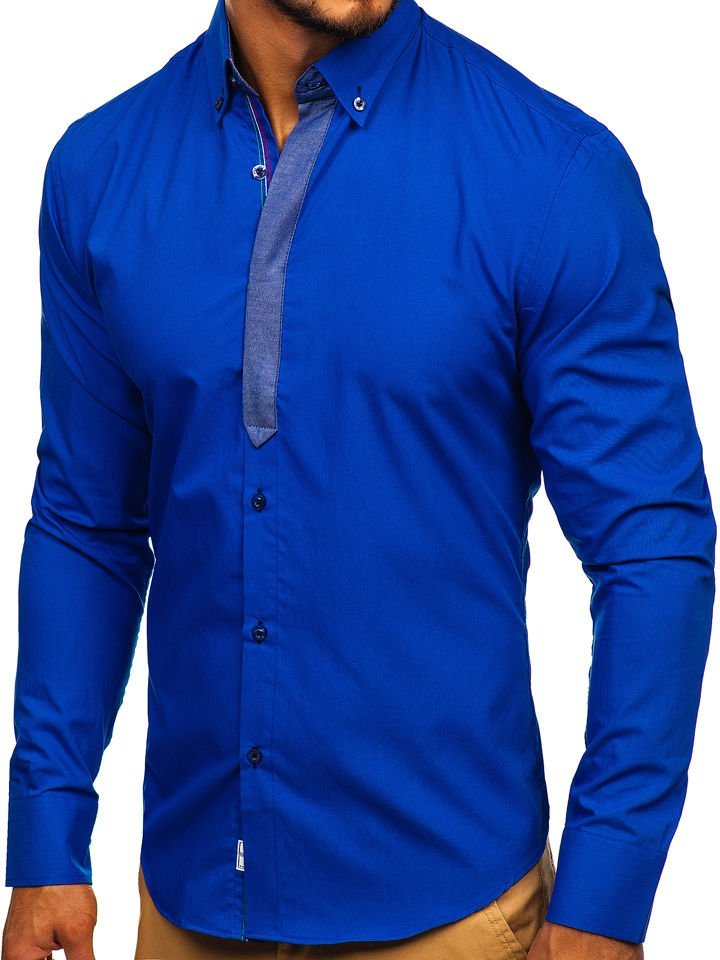A felhasználók véleménye Elegáns férfi hosszú ujjú ing búzavirágkék Bolf 3725