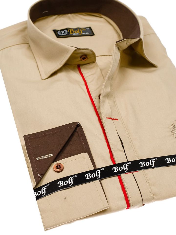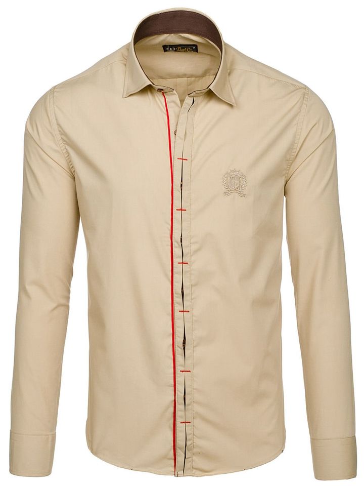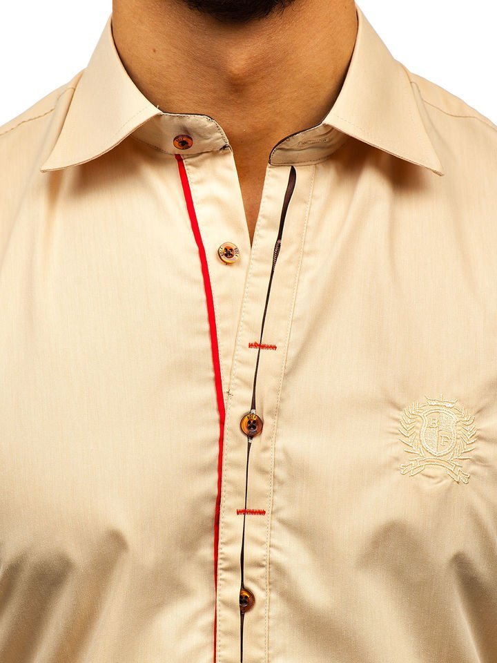 Camel elegáns hosszú ujjú férfiing 1769. A termék hai gallérral, állítható mandzsettákkal, takart gombokkal és kerekített alsó résszel van ellátva. Az ingen található mandzsetták a kihajtás után barna színűek, ezek teszik karakteressé. Az ing dekoratív elemei a piros varrások a gomboknál és a gyártó varrott logója a bal mellkason. A termék nagyszerűen fekszik az alakon, kellemes viselet.Az ing ideálisan alakra szabott, jól áll minden casual és elegáns stilizációban. A kiegészítőktől függően, különböző módon mutat. Nagyszerűen párosítható farmerral, chinóval vagy zakóval.