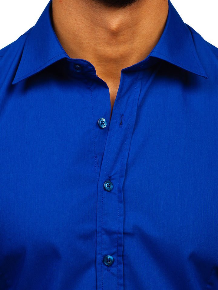 Búzavirágkék színű, elegáns, hosszú ujjú férfiing - Bolf 1703 - nem csak az elegáns férfiak szekrényében kötelező darab. Ez a modell számos, többé-kevésbé intenzív színben is kapható, így számtalan casual és smart stílusú ruhával könnyen összeilleszthető. Az inget kifejezetten a minimalista divatirányzatok rajongóinak számára ajánljuk. Kényelmes, szépen varrott. Egy feltétlenül kötelező ruhadarab a tudatos üzletember ruhatárában. Az egyszerű, klasszikus, érdekes színű fazonjának köszönhetően ez az ingmodell nagyszerűen kiegészít számos hétköznapi stilizációt. Testhezálló slim fit ing, gombolható, kerekített alsó résszel rendelkezik. Az ujjai széles, állítható mandzsettával vannak ellátva, egy gombbal zárhatók. Klasszikus gallér, rövid lecsapott véggel.