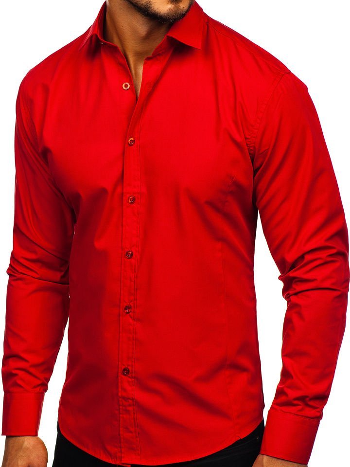 Piros színű, elegáns, hosszú ujjú férfiing - Bolf 1703 - nem csak az elegáns férfiak szekrényében kötelező darab. Ez a modell számos, többé-kevésbé intenzív színben is kapható, így számtalan casual és smart stílusú ruhával könnyen összeilleszthető. Az inget kifejezetten a minimalista divatirányzatok rajongóinak számára ajánljuk. Kényelmes, szépen varrott. Egy feltétlenül kötelező ruhadarab a tudatos üzletember ruhatárában. Az egyszerű, klasszikus, érdekes színű fazonjának köszönhetően ez az ingmodell nagyszerűen kiegészít számos hétköznapi stilizációt. Testhezálló slim fit ing, gombolható, kerekített alsó résszel rendelkezik. Az ujjai széles, állítható mandzsettával vannak ellátva, egy gombbal zárhatók. Klasszikus gallér, rövid lecsapott véggel.