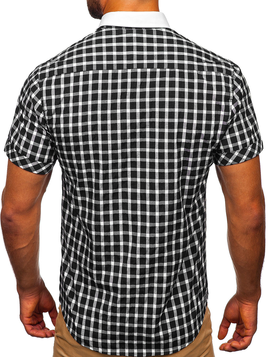 Elegáns hosszú ujjú fekete-fehér férfi ing Bolf 3703