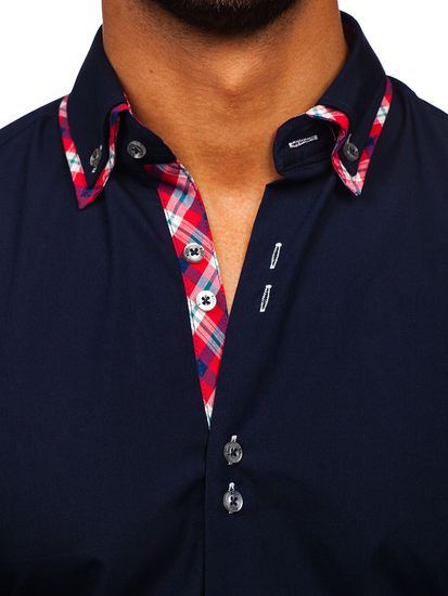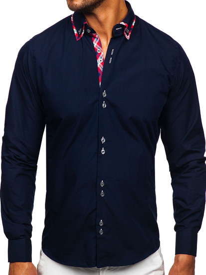 A felhasználók véleménye Elegáns férfi hosszú ujjú ing sötétkék Bolf 4704