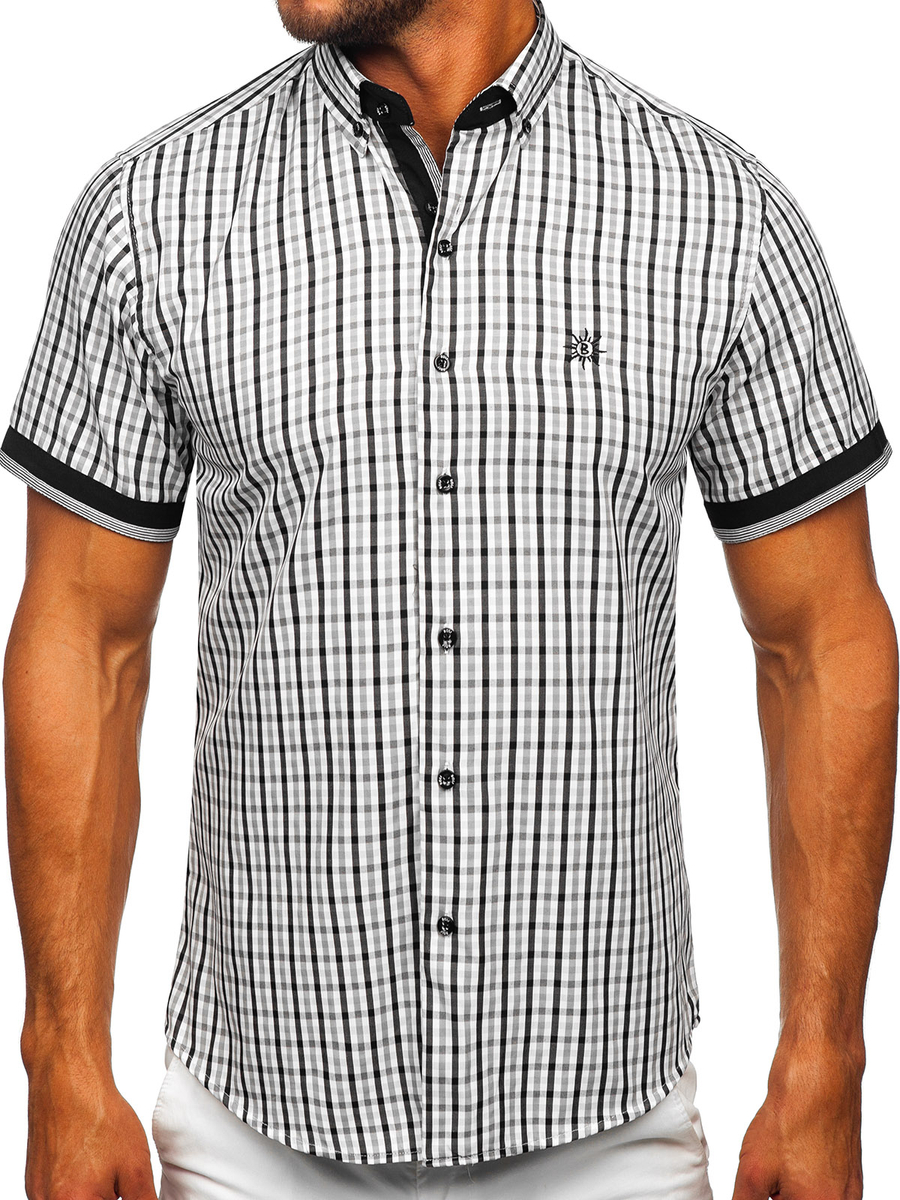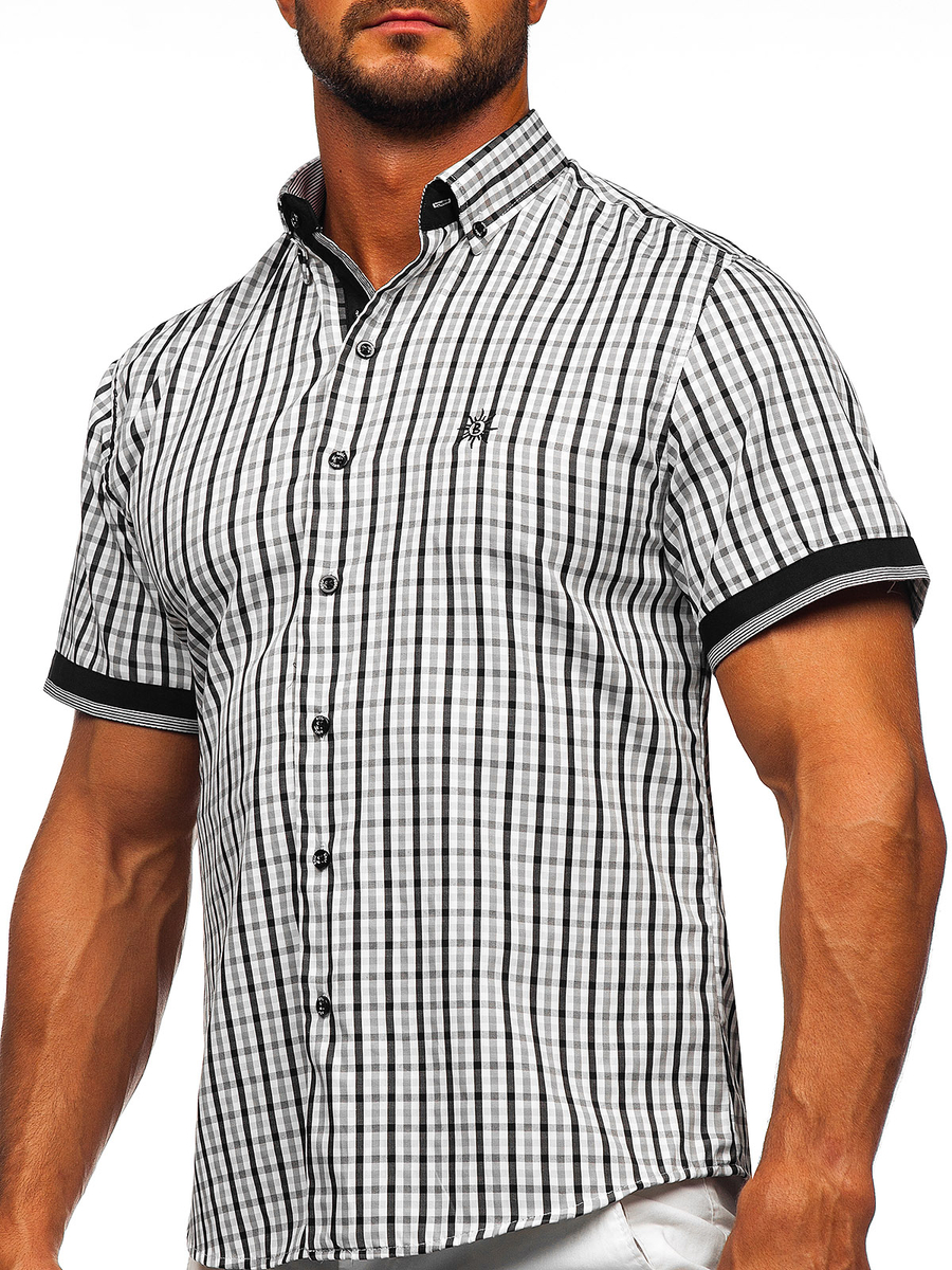 A felhasználók véleménye Kockás rövid ujjú férfiing fekete színben Bolf 4510