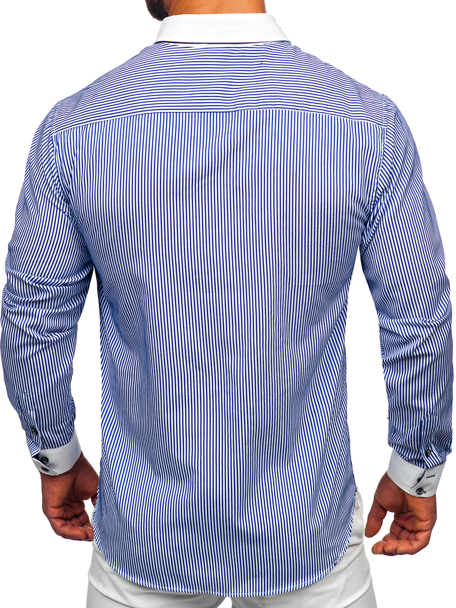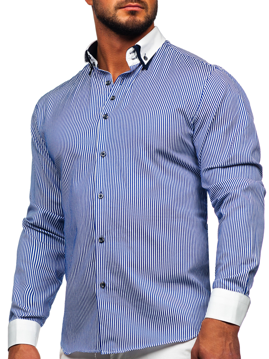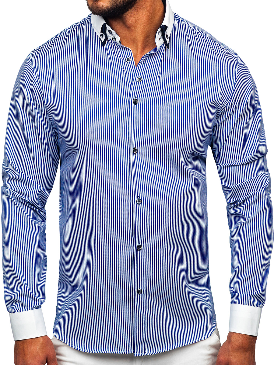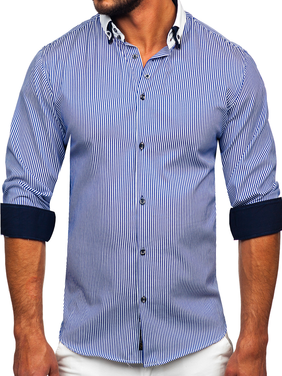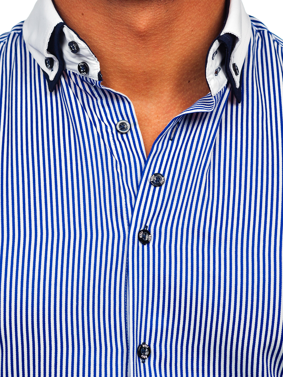A bróker ing, valószínűleg az egyik legférfiasabb férfiing fazon. Ideális, hogy hibátlan kinézetet biztosítson egy sikeres férfinak. Kék színű férfi Bolf slim fit ing, mutatós és modern. A kék csíkok feldobják a hétköznapi lookot, dupla button down gallér lazaságot biztosít.