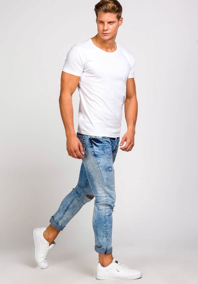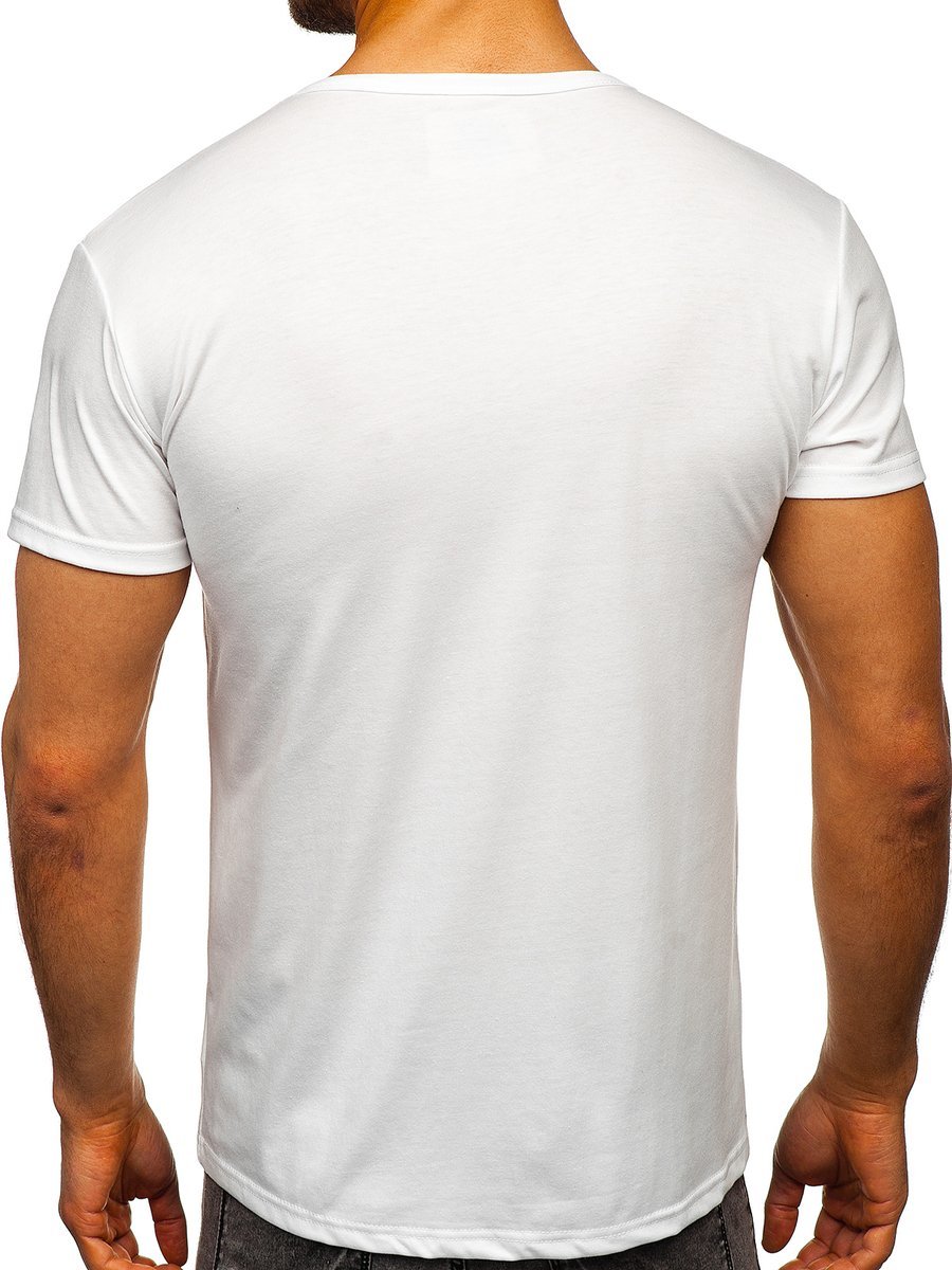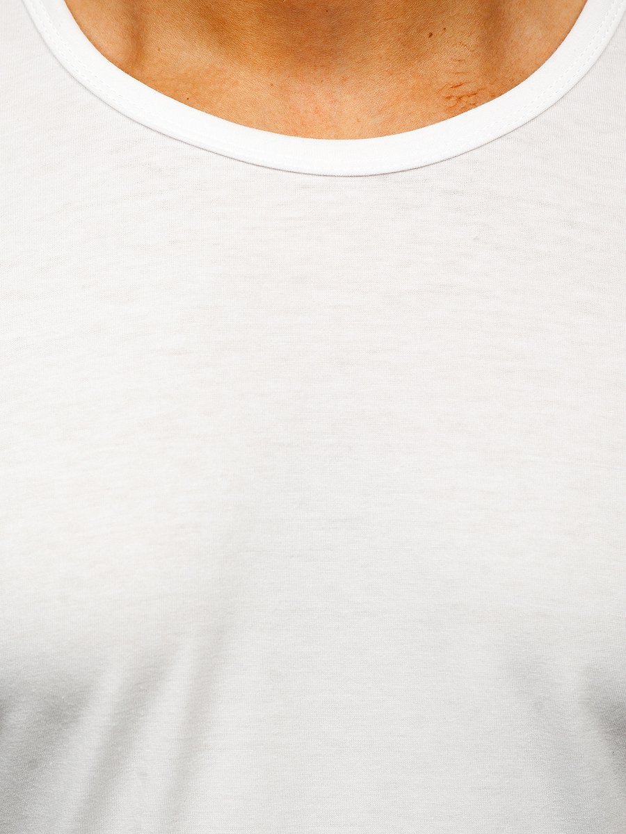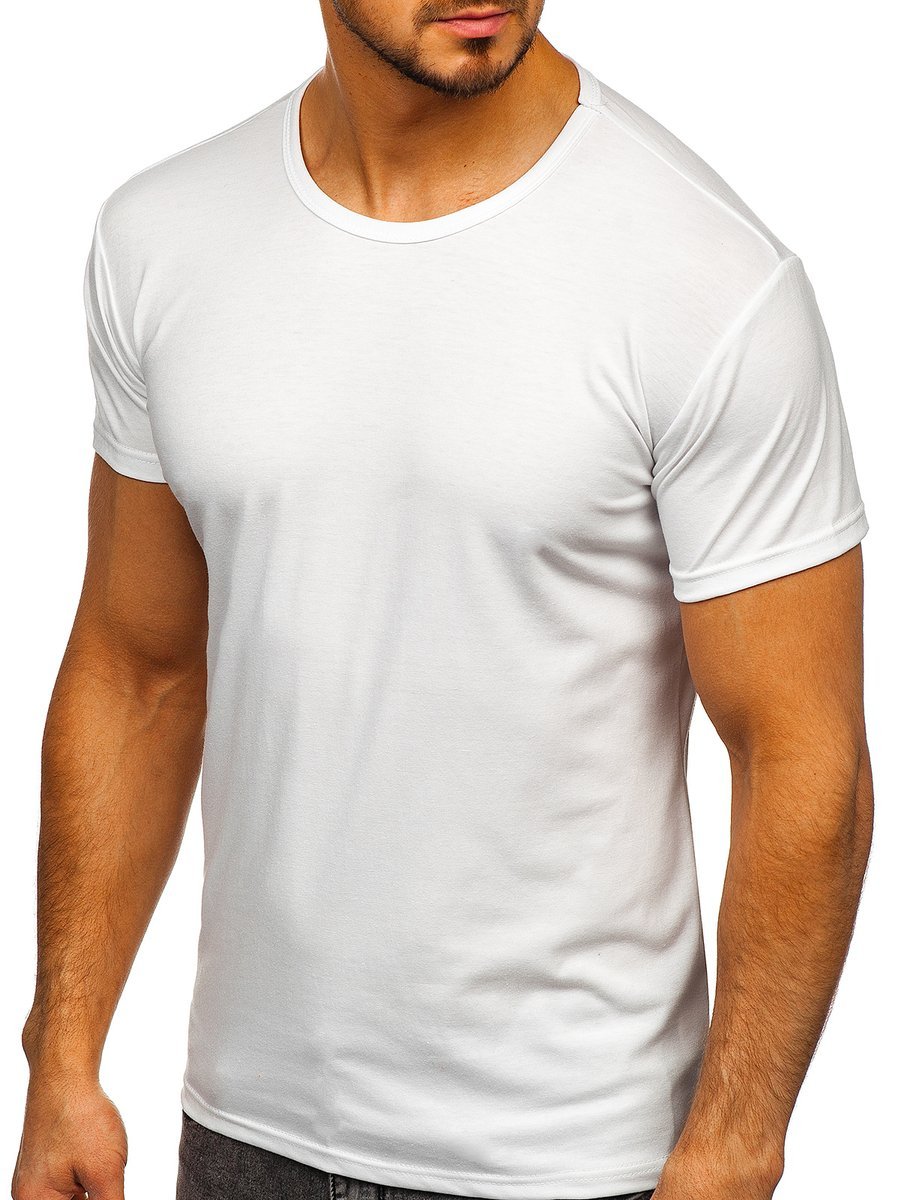Fehér férfi póló a Bolftól egy basic modell. Klasszikus póló, kerek dekoltázzsal, alakra szabott szabással, fehér színben. Puha anyagból készült. A póló nagyszerű alapként szolgál utcai stilizációkhoz. Divatos minimalista outfittet alakíthatsz ki.