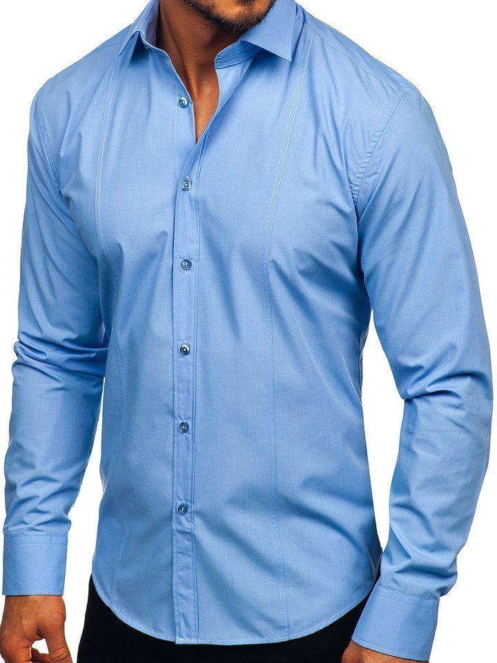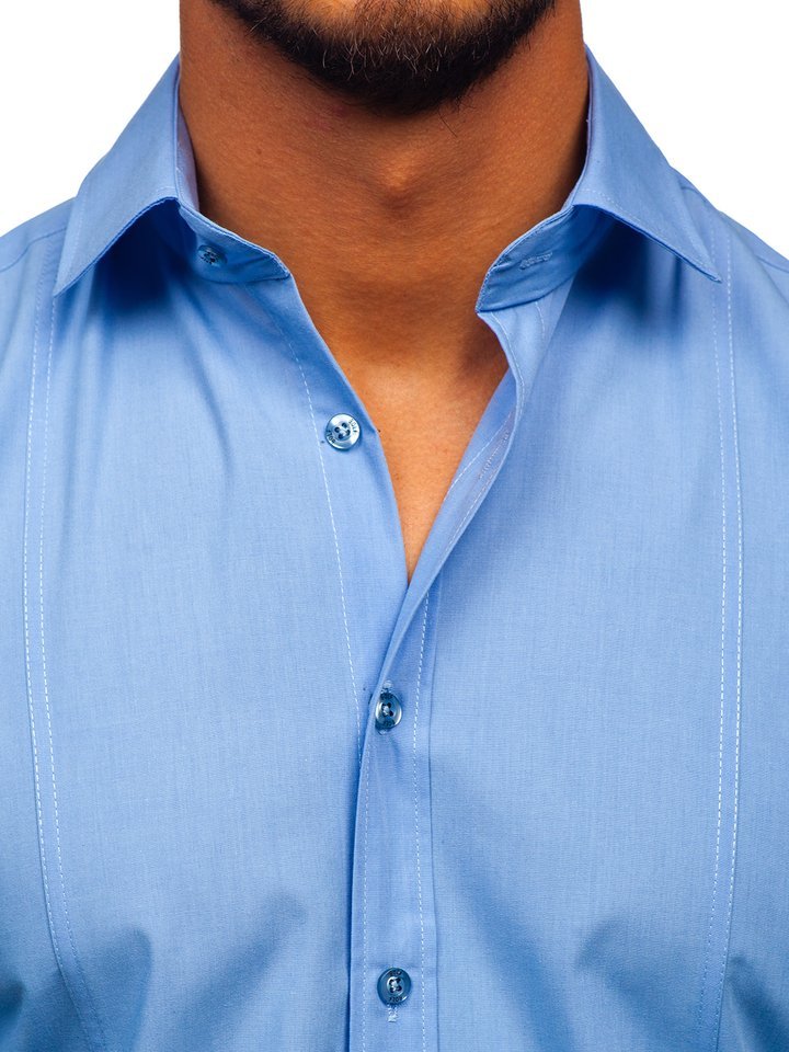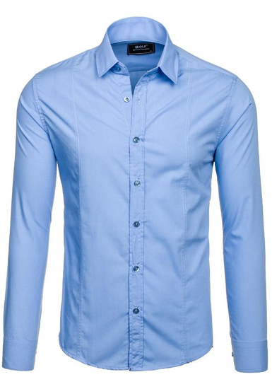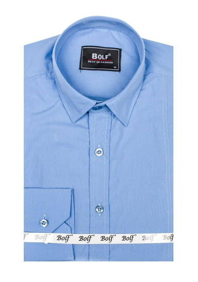 A felhasználók véleménye Kék hosszú ujjú férfi intelligens ing Bolf 6944
