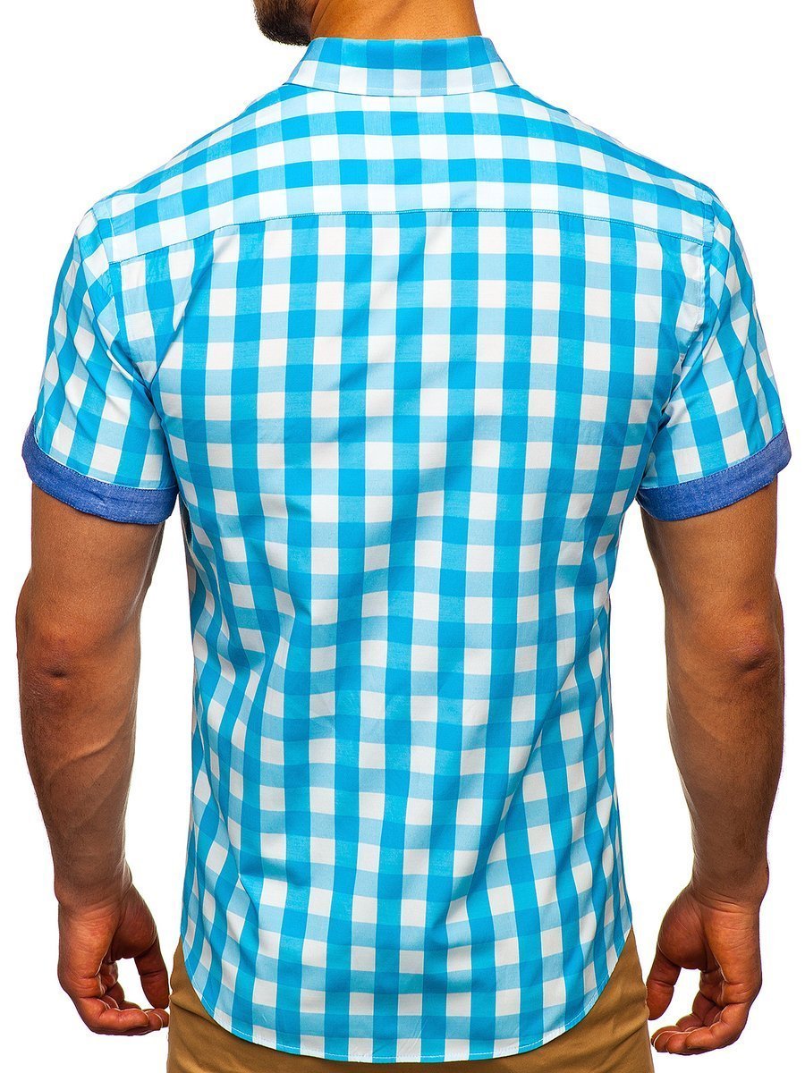 A felhasználók véleménye Kockás rövid ujjú férfiing türkizkék Bolf 6522