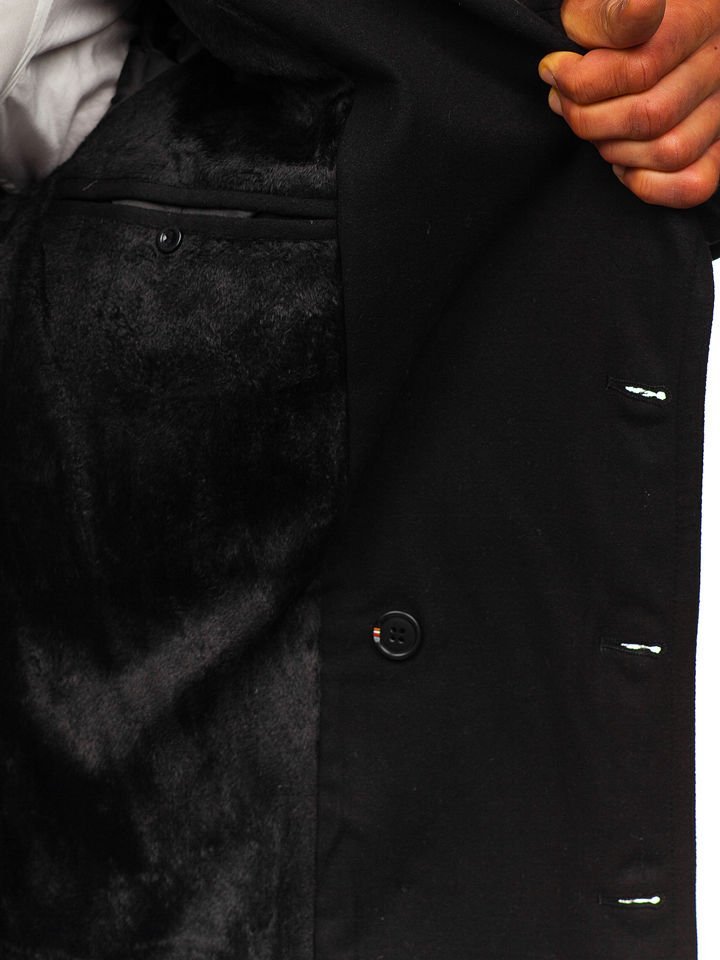 Bélelt, fekete, téli Bolf kabát elegáns gallérral. Fantasztikusan felépíti és feldobja a lookot a hideg napokon. Fekete téli kabát, nagy zsebekkel, nagyszerűen véd a hideg és a szél elől. Viseld a hétköznapokon, vagy használd stilizációkban öltönnyel.