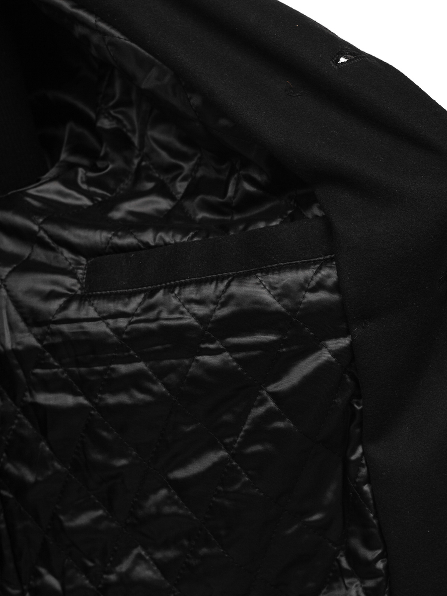 Divatos, fekete, két soros férfi kabát a Bolftól. Katonai gombsorral, praktikus zsebekkel, álló gallérral fantasztikusan kiemeli a férfi alakot. Fekete férfi kabát nagyszerűen mutat laza stilizációkhoz a hétköznapokra, jól mutat elegáns szettekben is.