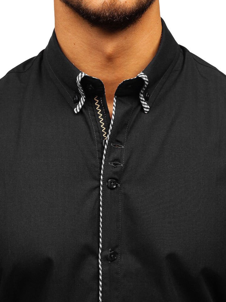 Nagyszerű, klasszikus slim fit Bolf ing galléral, button down gallérral. Divatos, fekete szín, kerekített alsó rész és dekoratív berakások, a gallérnál és gombokkal. Fekete férfi ing, jól mutat zakóval, chinóval, vagy bőrdzsekivel. Ideális a hétköznapokra és különböző alkalmakra.