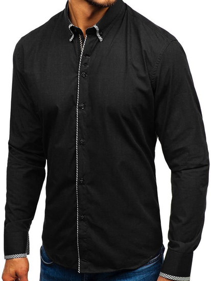 Elegáns hosszú ujjú férfi ing fekete színben Bolf 2701-1