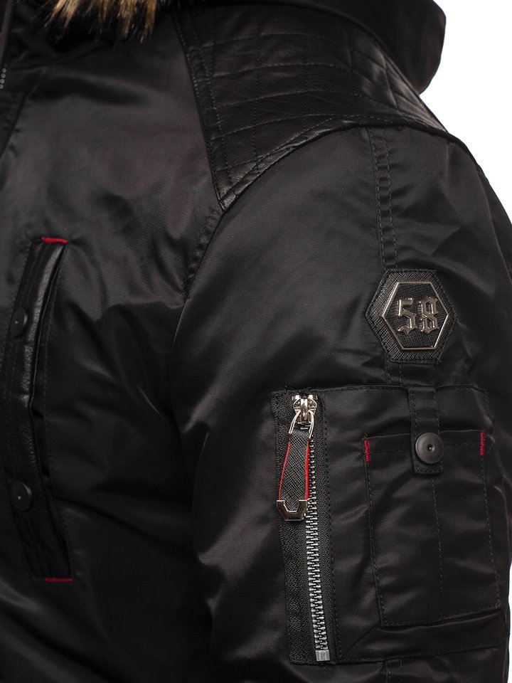 Meleg, praktikus, fekete téli dzseki a Bolf tól. Nagy zsebbel, állítható derékban, dekoratív szőrmével a kapucninál. Fekete téli dzseki, nagyszerűen mutat még a leghidegebb, fagyos napokon is. Viseld a hétköznapokon pl. szettben pulóverrel, vagy farmerral.