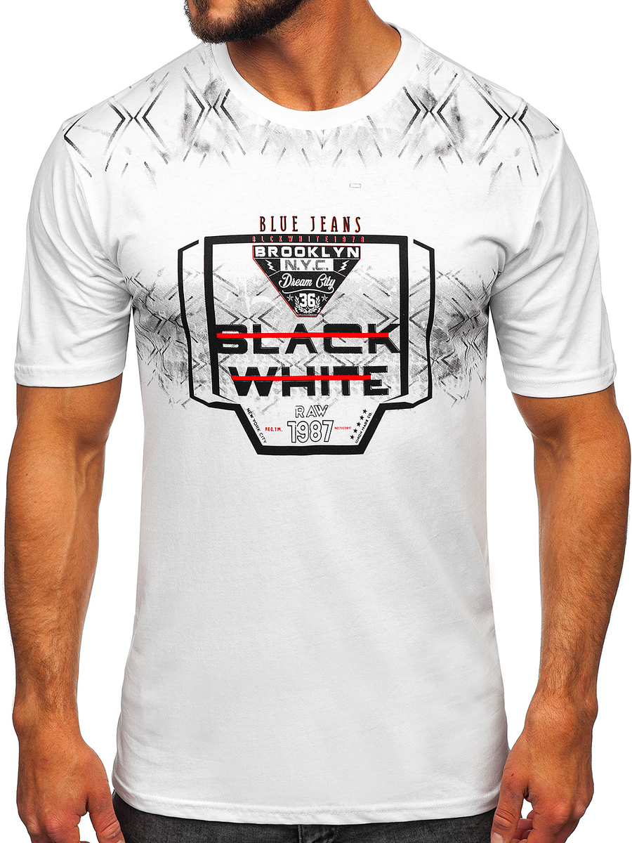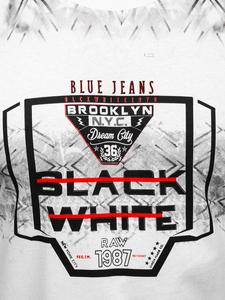 Pamut, könnyű férfi póló a Bolftól fehér színben. Könnyű, kényelmes nagy nyomattal a mellkason és visszafogott árnyékolásokkal. Fehér mintás póló, jól beválik nem formális stilizációkban. Párosítsd farmerral, viseld rövidnadrággal, joggerrel, vagy baggy nadrággal.