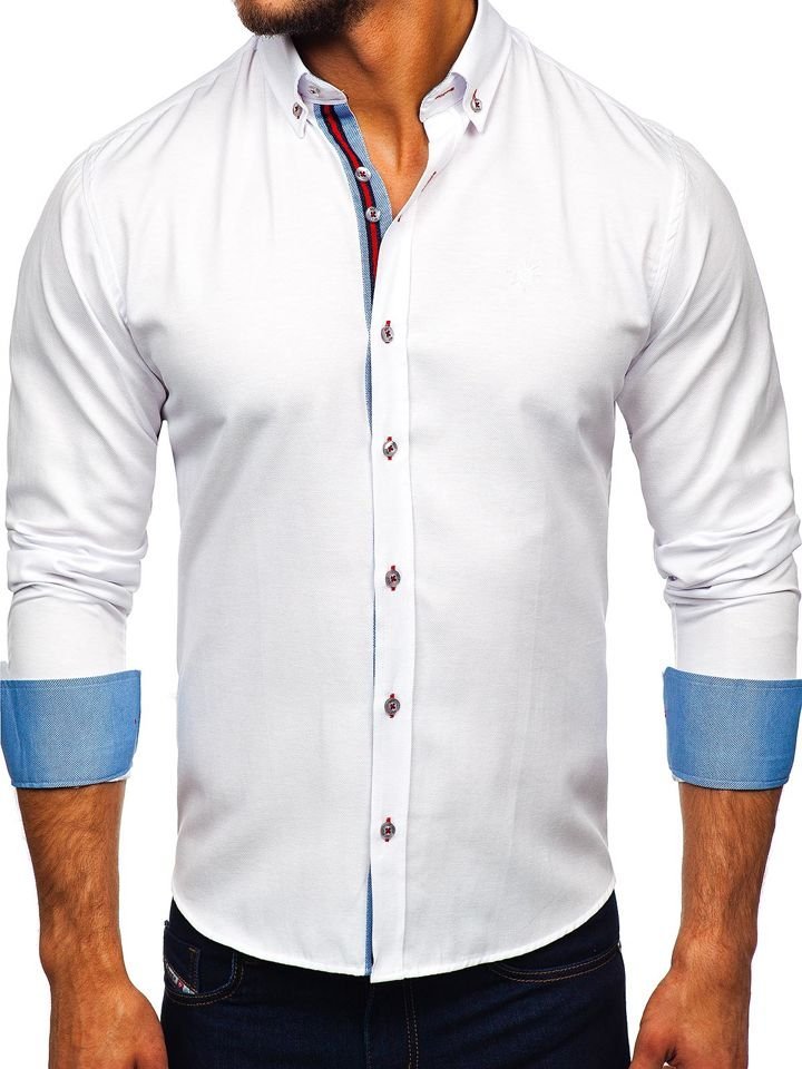 Nagyszerűen alakra szabott fehér hosszú ujjú Bolf ing. Kényelmes, kellemes a tapintása, divatos button down gallérral és szépen kiemelt mandzsettákkal. Fehér slim fit ing, eleganciát biztosít a stilizácónak. Megfelelő munkába, vagy munka utánra is.