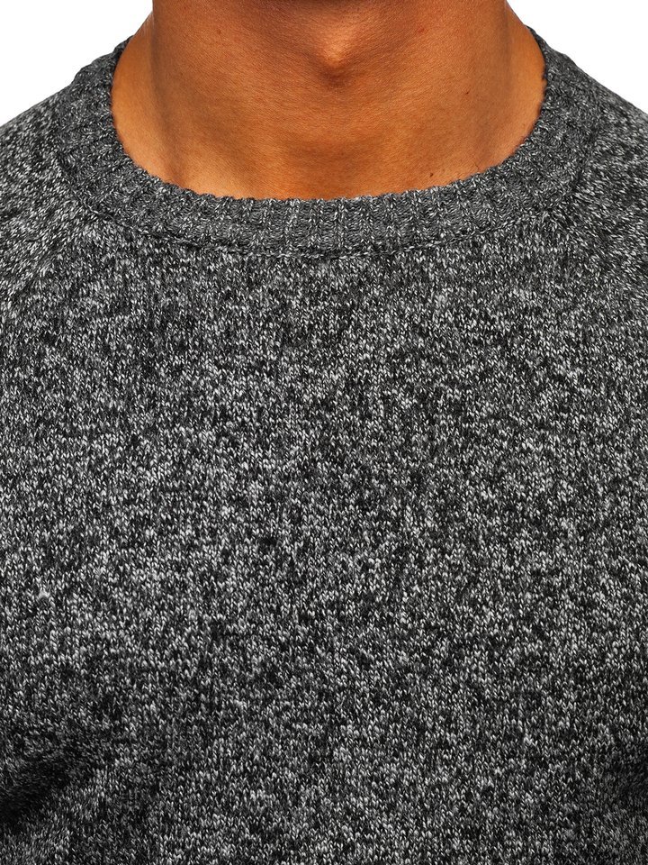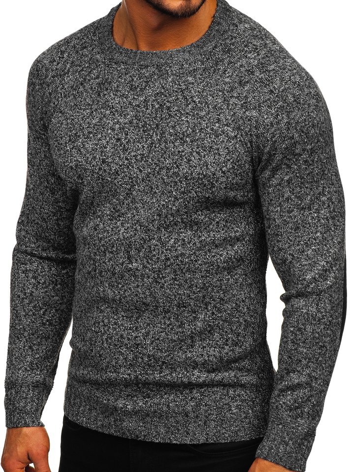 Szürke férfi pulóver a Bolf kollekcióból. Belebújós, kerek dekoltázsú modell passzés ujjakkal és alsó résszel. Szürke pulóver divatos varrásokkal oldalt. Szürke pulóver, minden alakon jól mutat. Nagyszerűen párosítható farmerral, joggerrel vagy terepnadrággal