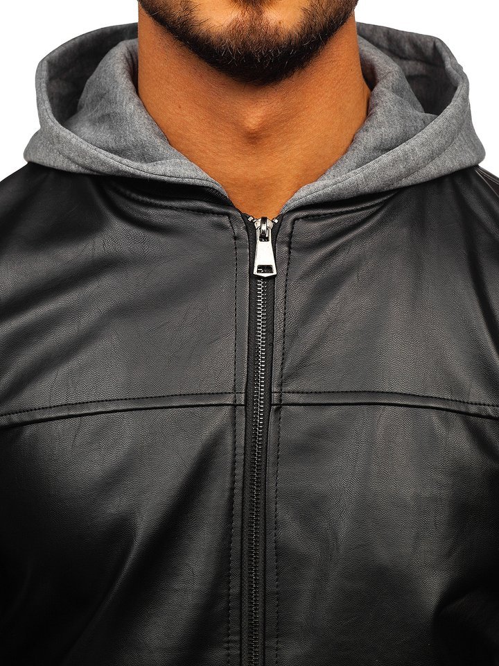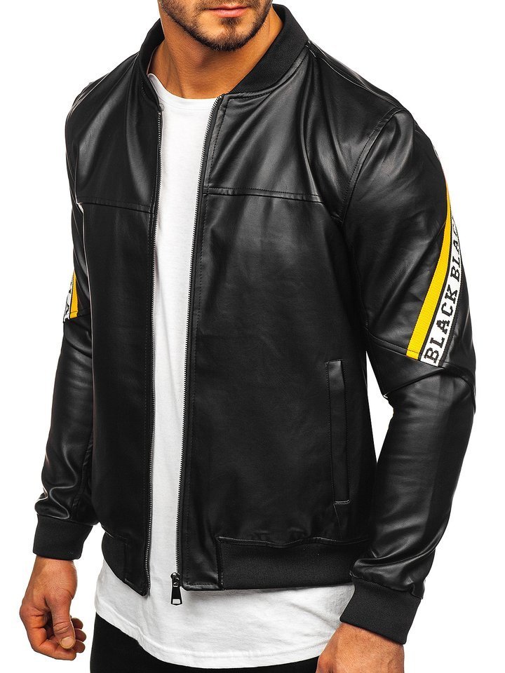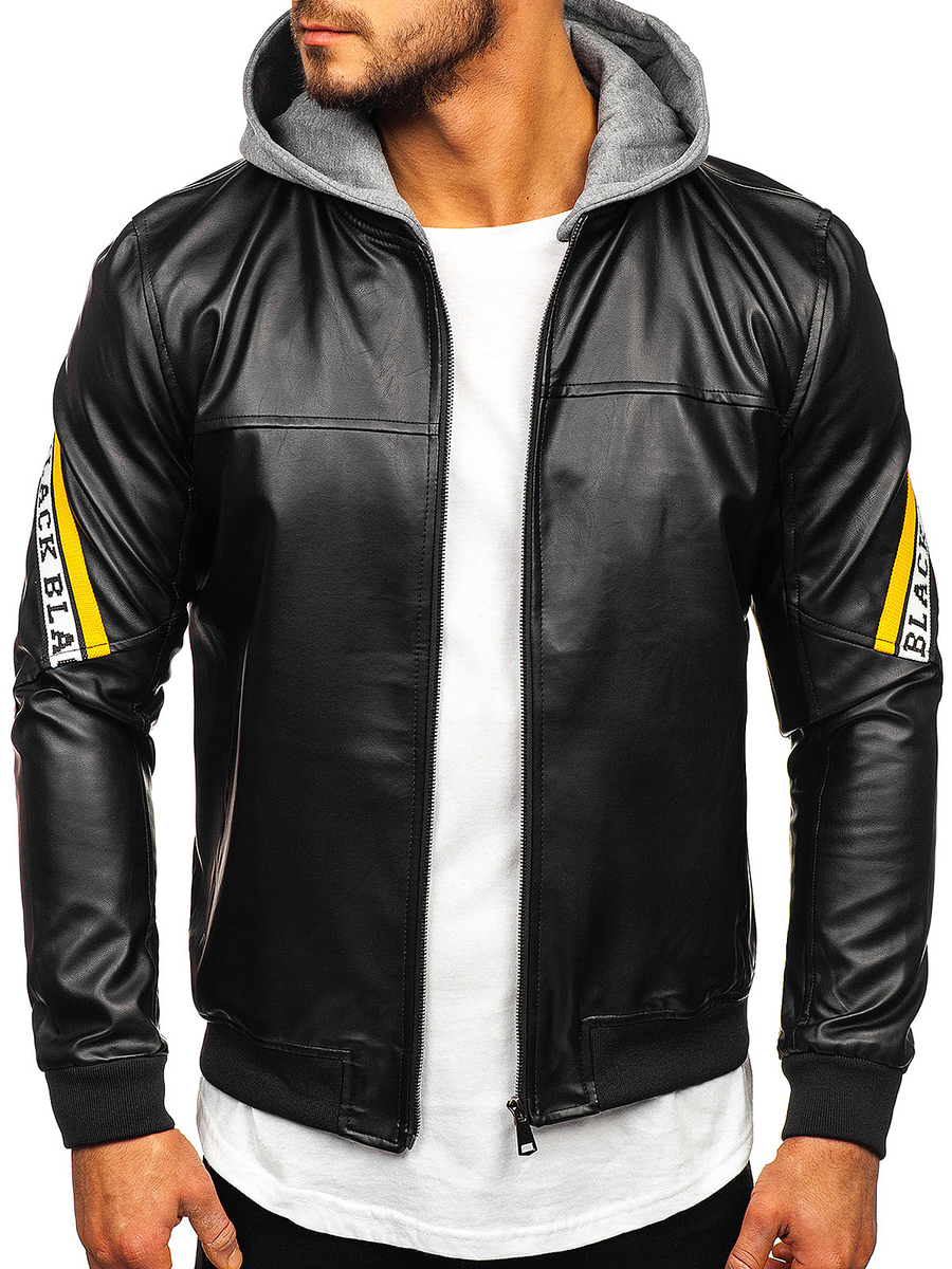 A felhasználók véleménye Férfi bőrdzseki kapucnival fekete-sárga Bolf HY614