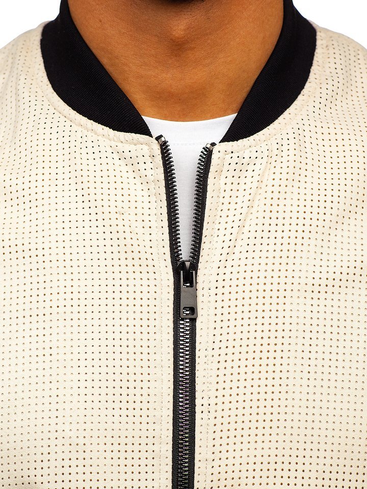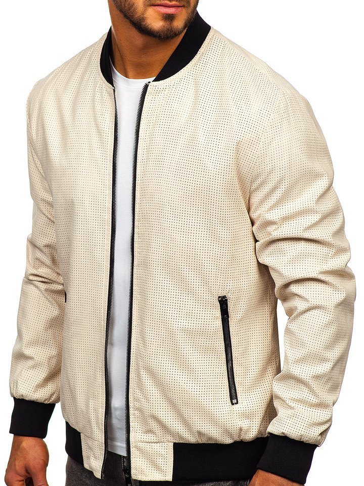 Férfi átmeneti bomber dzseki Bolf 6116, tökéletes ajánlat a tavaszi napokra. Klasszikus, bézs, cipzározható bomber dzseki. Álló típusú gallérral, mely fekete szűkítővel van ellátva. Két külső, cipzározható zsebbel és egy belső zsebbel, ennek köszönhetően kifejezetten praktikus. Az ujjak és a dzseki alja széles passzéval ellátva.