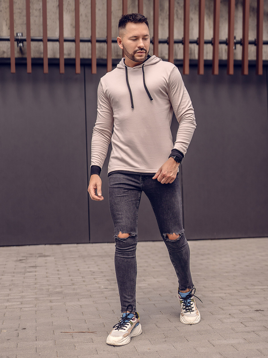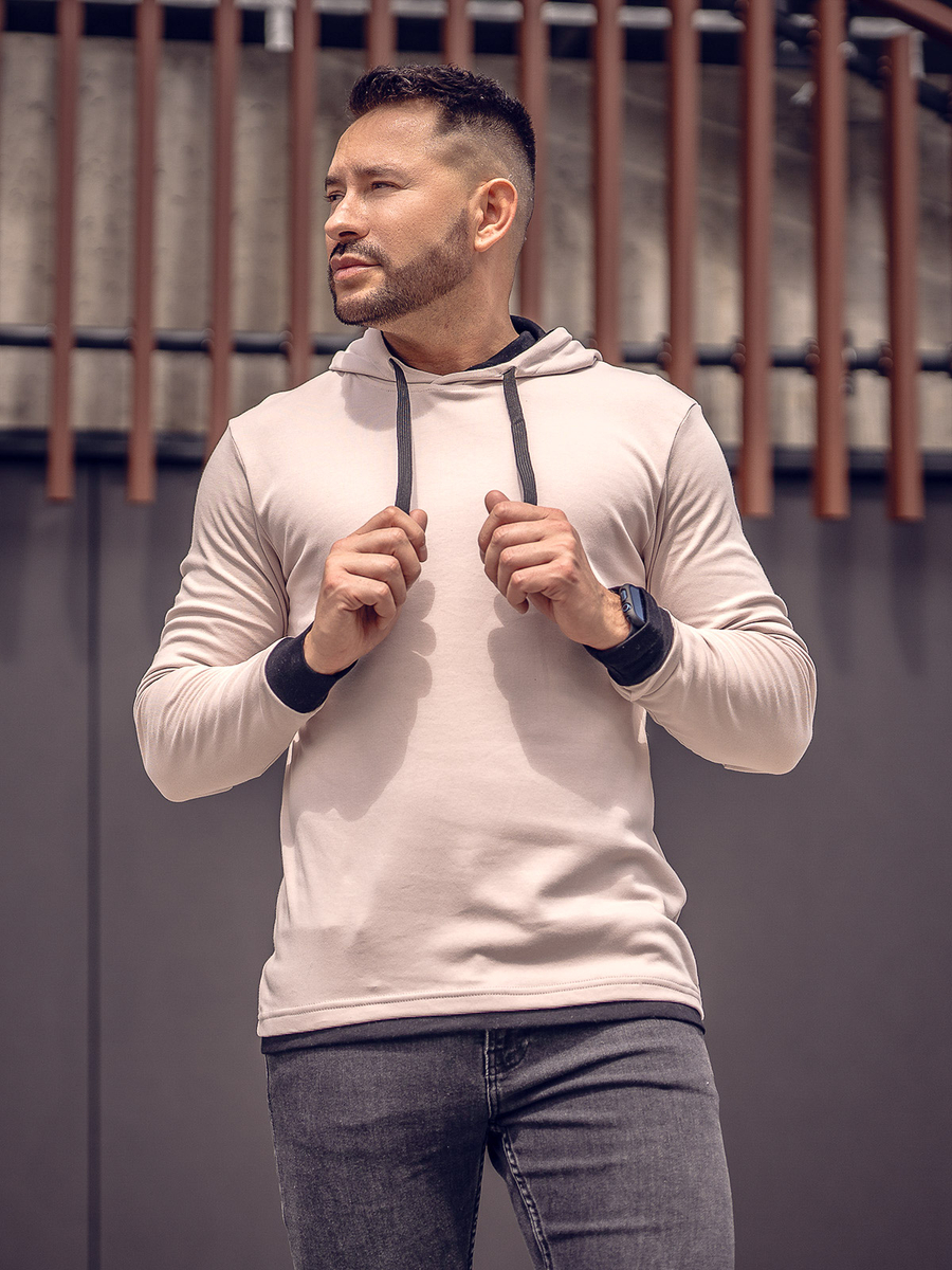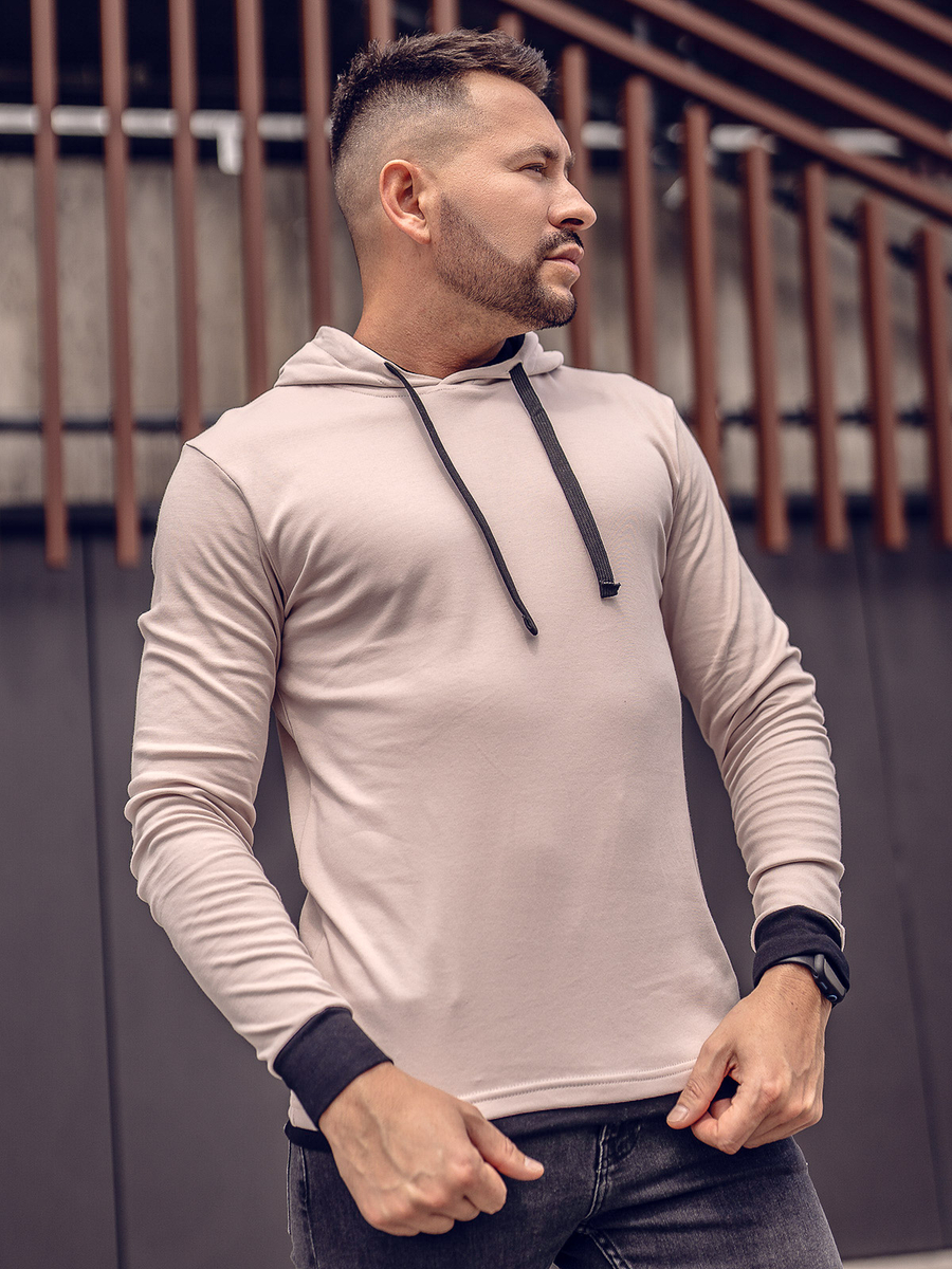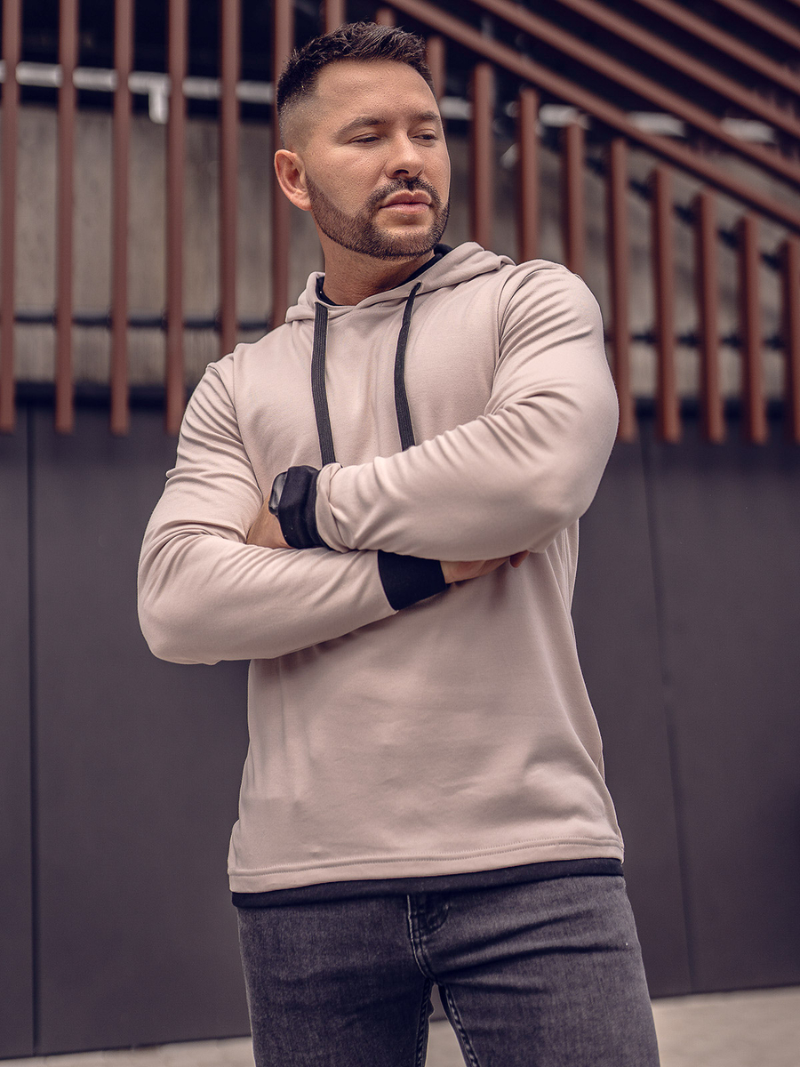 Kapucnis férfi melegítőfelső bézs színben -Bolf 145380- univerzális termék, nagyszerűen mutat nyári és téli stilizációkban egyaránt. Többféle színben kapható, ami széles lehetőségeket kínál a hétköznapi stilizációk létrehozásához. Divatos színű pulcsi a jó outfit alapja. Belebújós, állítható kapucnival, tökéletesen véd a szél és a hideg elől. Az alja és az ujjai kontrasztos szalaggal vannak díszítve. Egy musthave a sportos stílus kedvelőinek. Kényelmet biztosít séta vagy jogging közben, valamint az edzésen is. A melegítőfelső 100%-ban pamutból készült, ennek köszönhetően rendkívül kényelmes és kellemes a tapintása. Farmerral vagy joggerrel érdekes stilizációt alkot. A hűvösebb estéken nagyszerűen mutat bomberdzsekivel.
