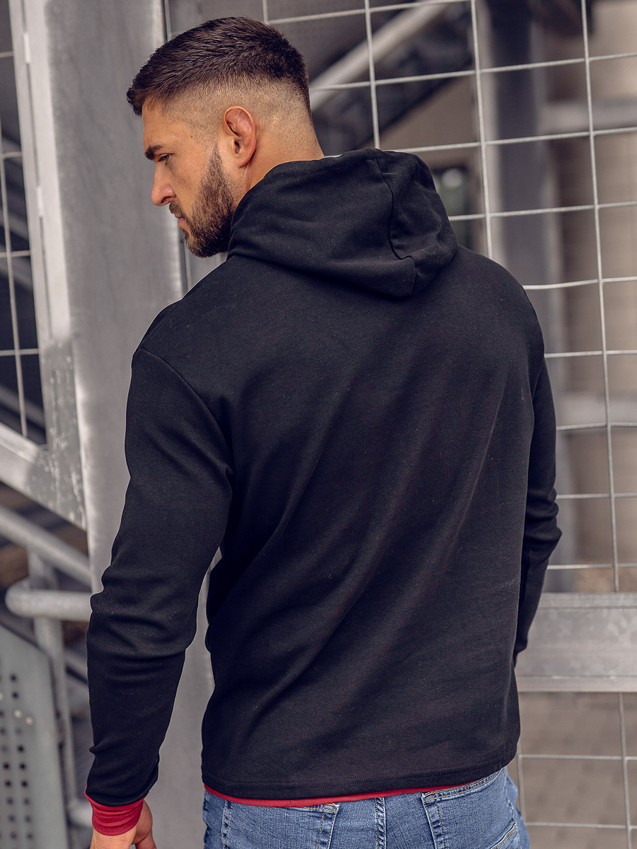 Kapucnis férfi melegítőfelső fekete színben -Bolf 145380- univerzális termék, nagyszerűen mutat nyári és téli stilizációkban egyaránt. Többféle színben kapható, ami széles lehetőségeket kínál a hétköznapi stilizációk létrehozásához. Divatos színű pulcsi a jó outfit alapja. Belebújós, állítható kapucnival, tökéletesen véd a szél és a hideg elől. Az alja és az ujjai kontrasztos szalaggal vannak díszítve. Egy musthave a sportos stílus kedvelőinek. Kényelmet biztosít séta vagy jogging közben, valamint az edzésen is. A melegítőfelső 100%-ban pamutból készült, ennek köszönhetően rendkívül kényelmes és kellemes a tapintása. Farmerral vagy joggerrel érdekes stilizációt alkot. A hűvösebb estéken nagyszerűen mutat bomberdzsekivel.