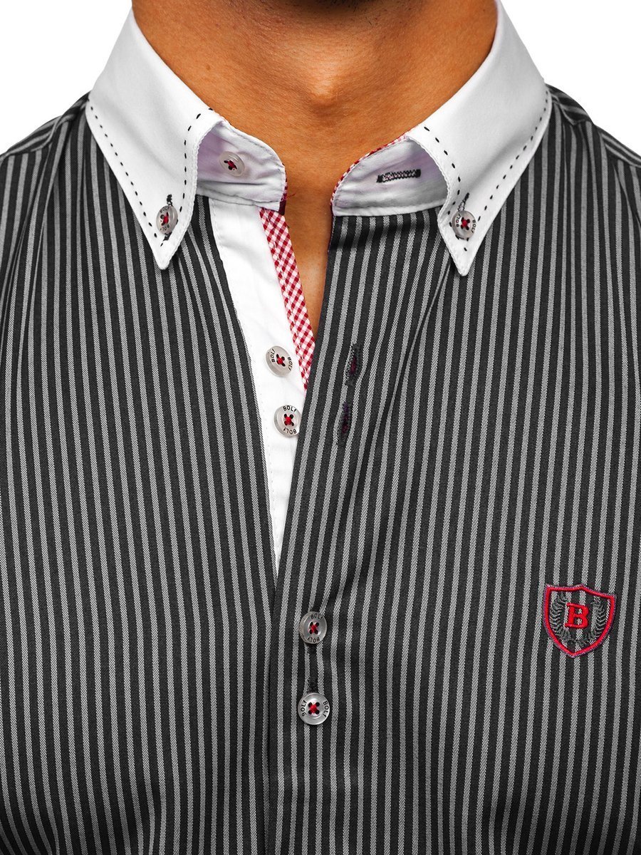 A felhasználók véleménye Férfi csíkos hosszú ujjú ing fekete Bolf 9717