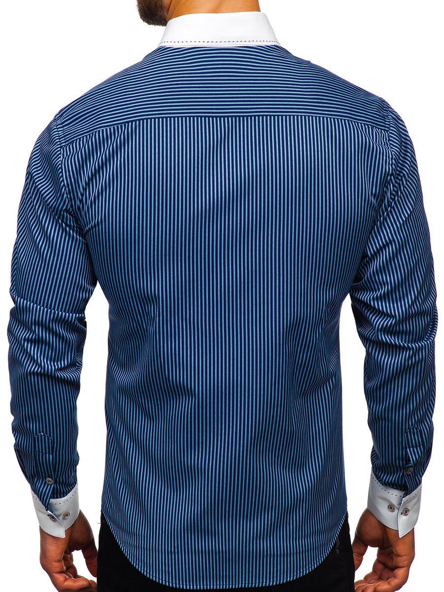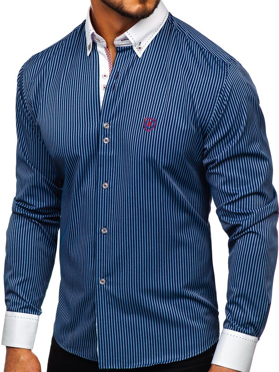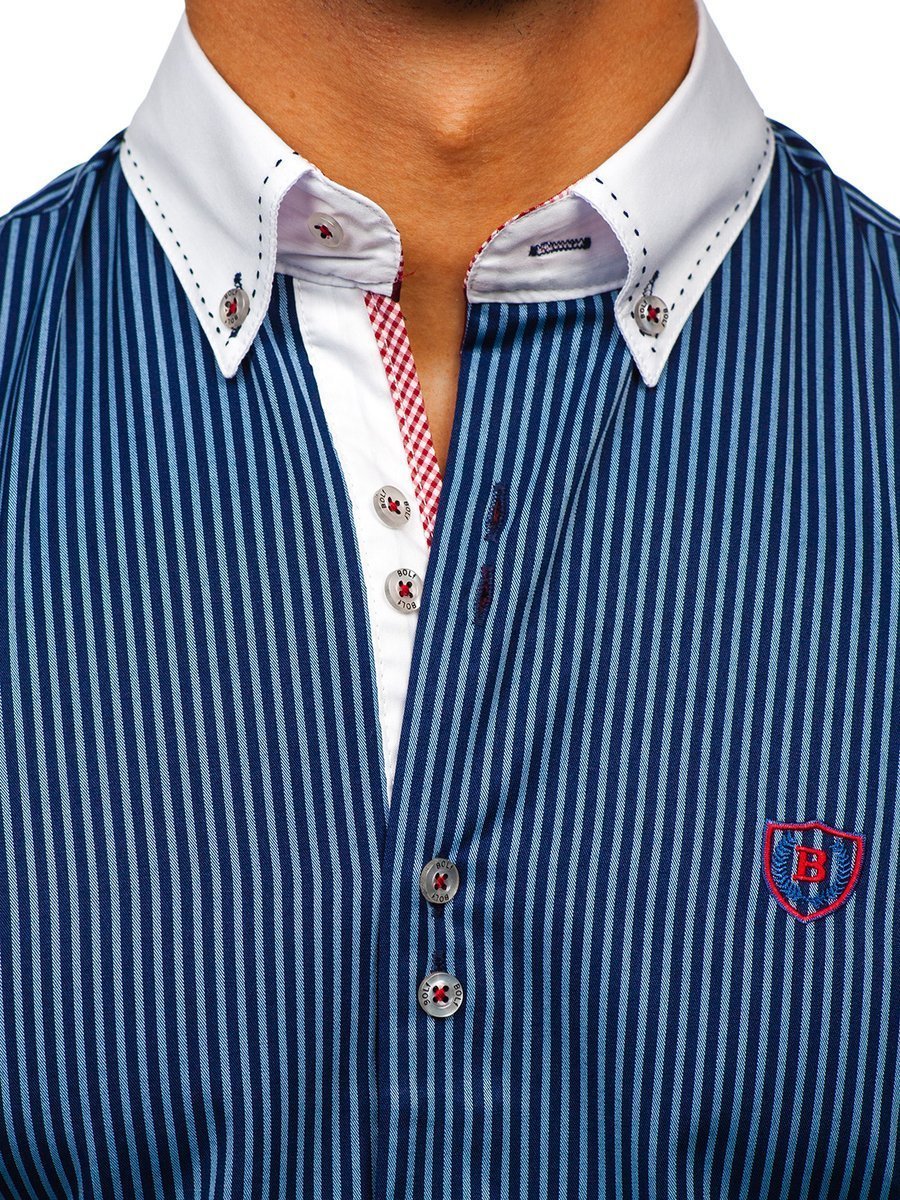 A felhasználók véleménye Férfi csíkos hosszú ujjú ing gránátkék Bolf 9717