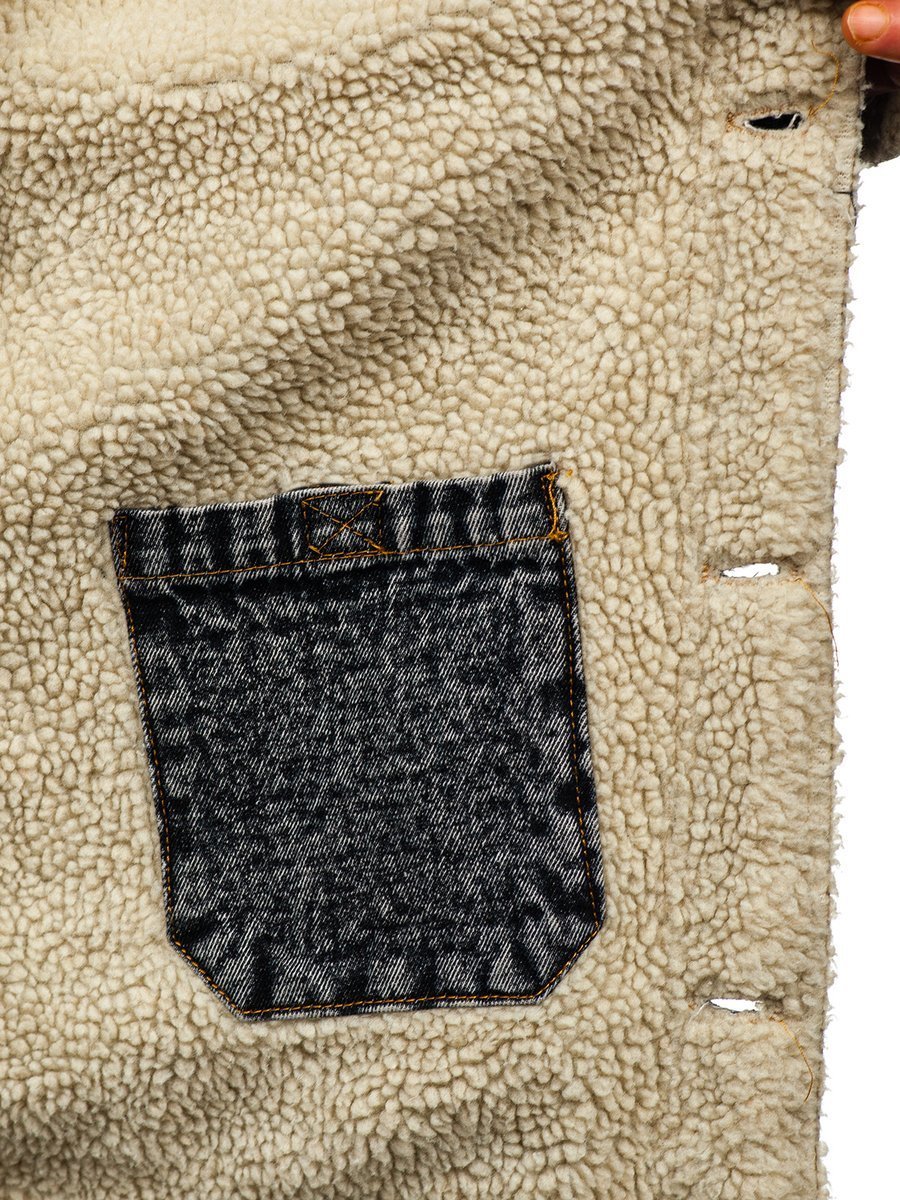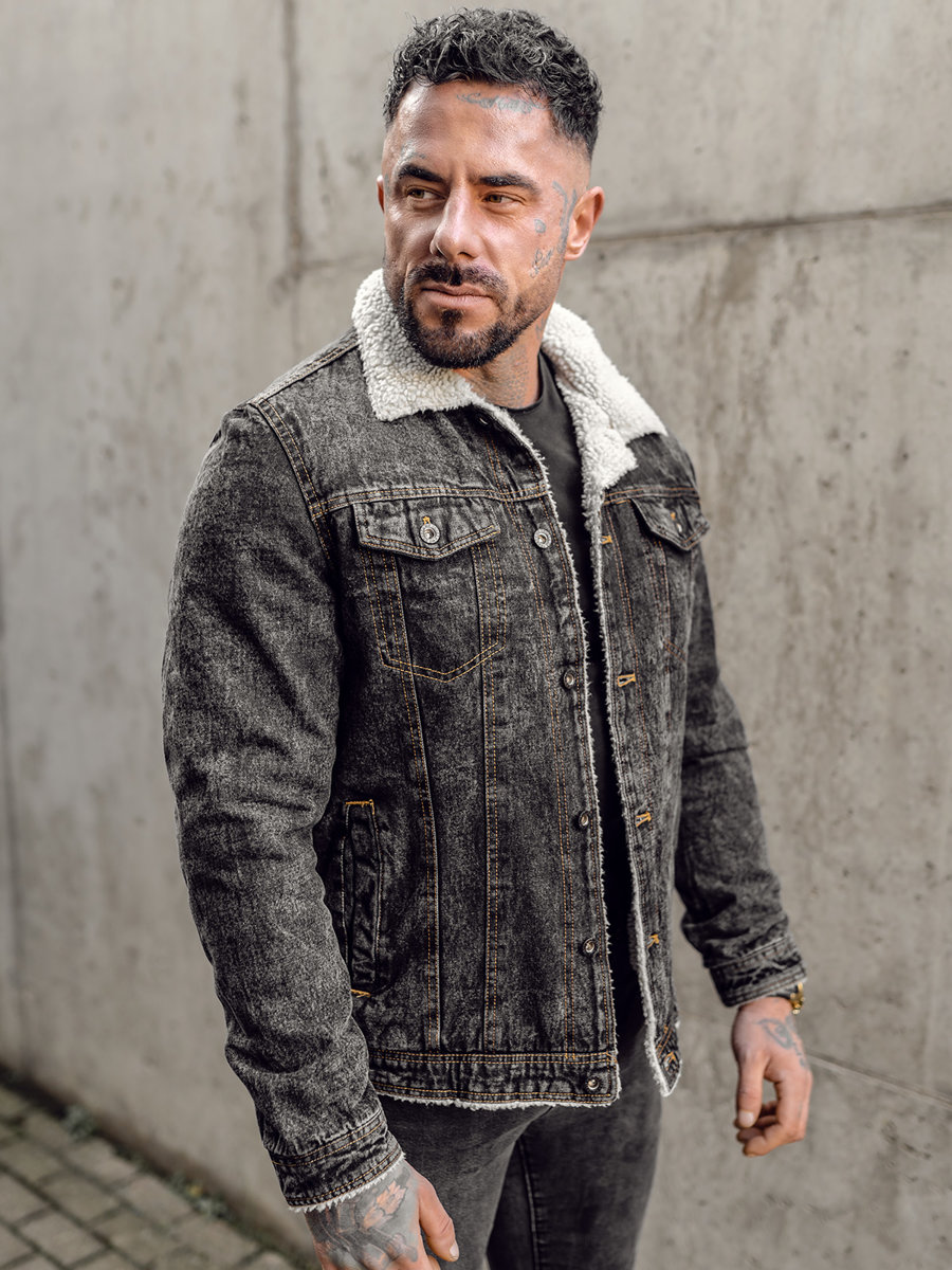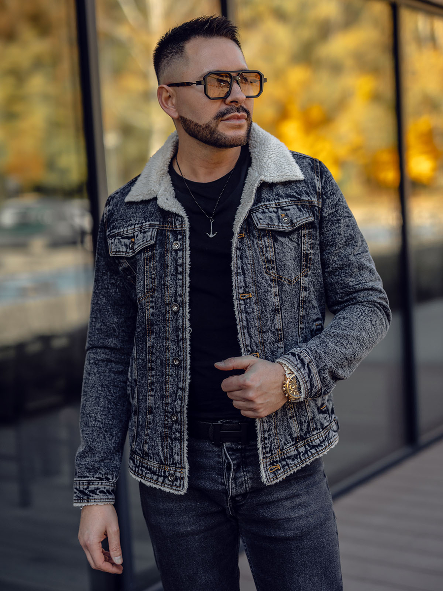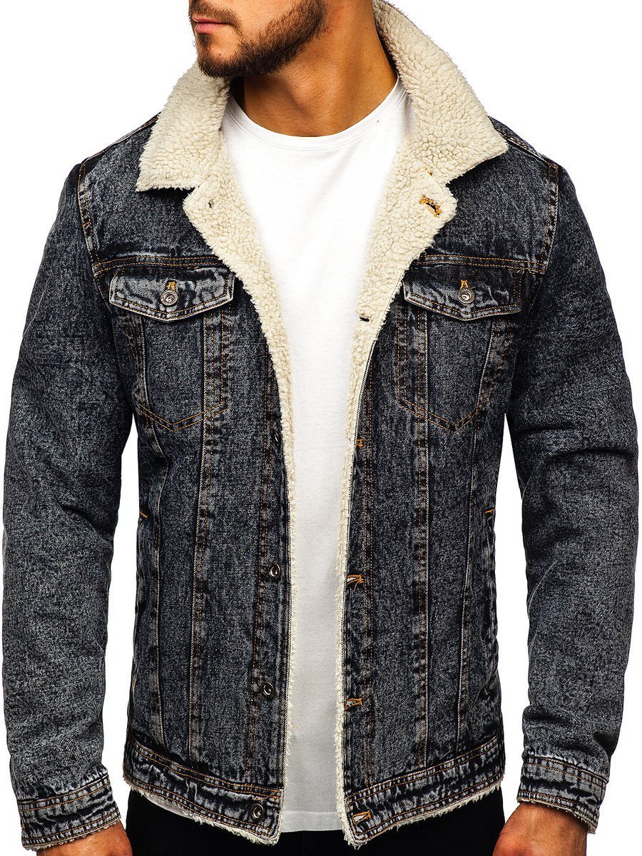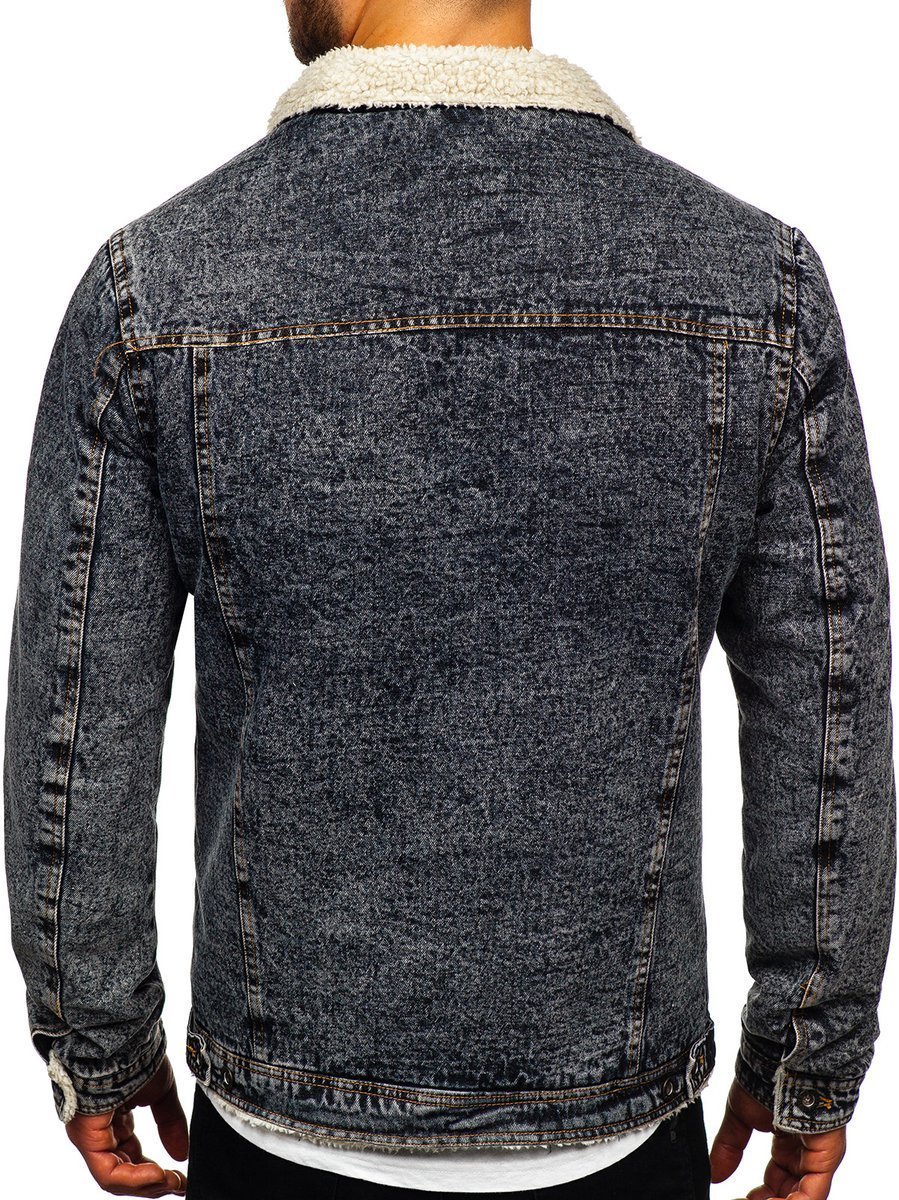 Grafit, férfi farmerdzseki Bolf 1109, gombolható. A jellegzetes tulajdonsága a meleg bunda belülről, amely tökéletesen véd a hűvös napokon. Bunda, a gallér dekorációs eleme, különlegessé teszi a stilizációt. Egyszerű, klasszikus fazonú dzseki, mell- és oldalzsebekkel. További aduja még a tépőzáras kulcstartó- vagy telefontartó zseb a dzseki belső oldalán.