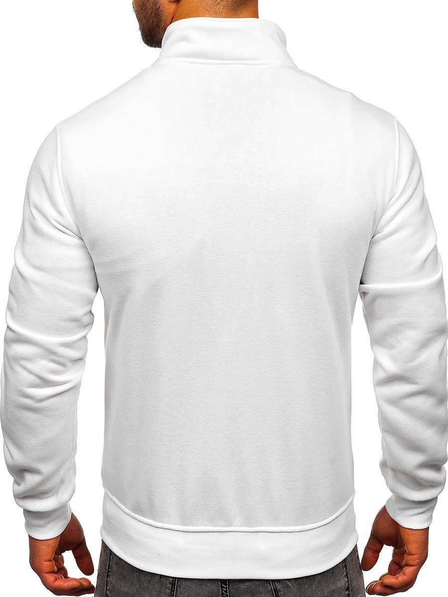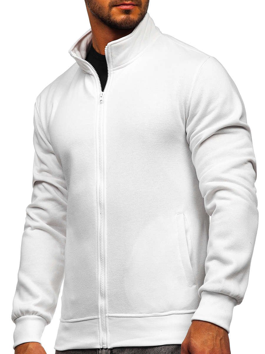 Fehér színű nyitható férfi pulcsi állógallérral -Bolf B2002- egy must have termék, mely a sportos és hétköznapi stilizációkban is megállja a helyét. Állógallérral rendelkezik, cipzározható pulcsi. A két külső, zár nélküli zseb praktikussá teszi. Az alja és az ujjai passzésak, ennek köszönhetően a pulcsi jól idomul az alakhoz. Néhány divatos színben elérhető, aminek köszönhetően különleges stilizációt hozhatsz létre minden nap. A pulcsi lehetővé teszi rengeteg egyedi kompozíció létrehozását. A munkába, az iskolába vagy az edzésre is viselhető. Nagyszerűen mutat sportos stilizációban pólóval és melegítőnadrággal.