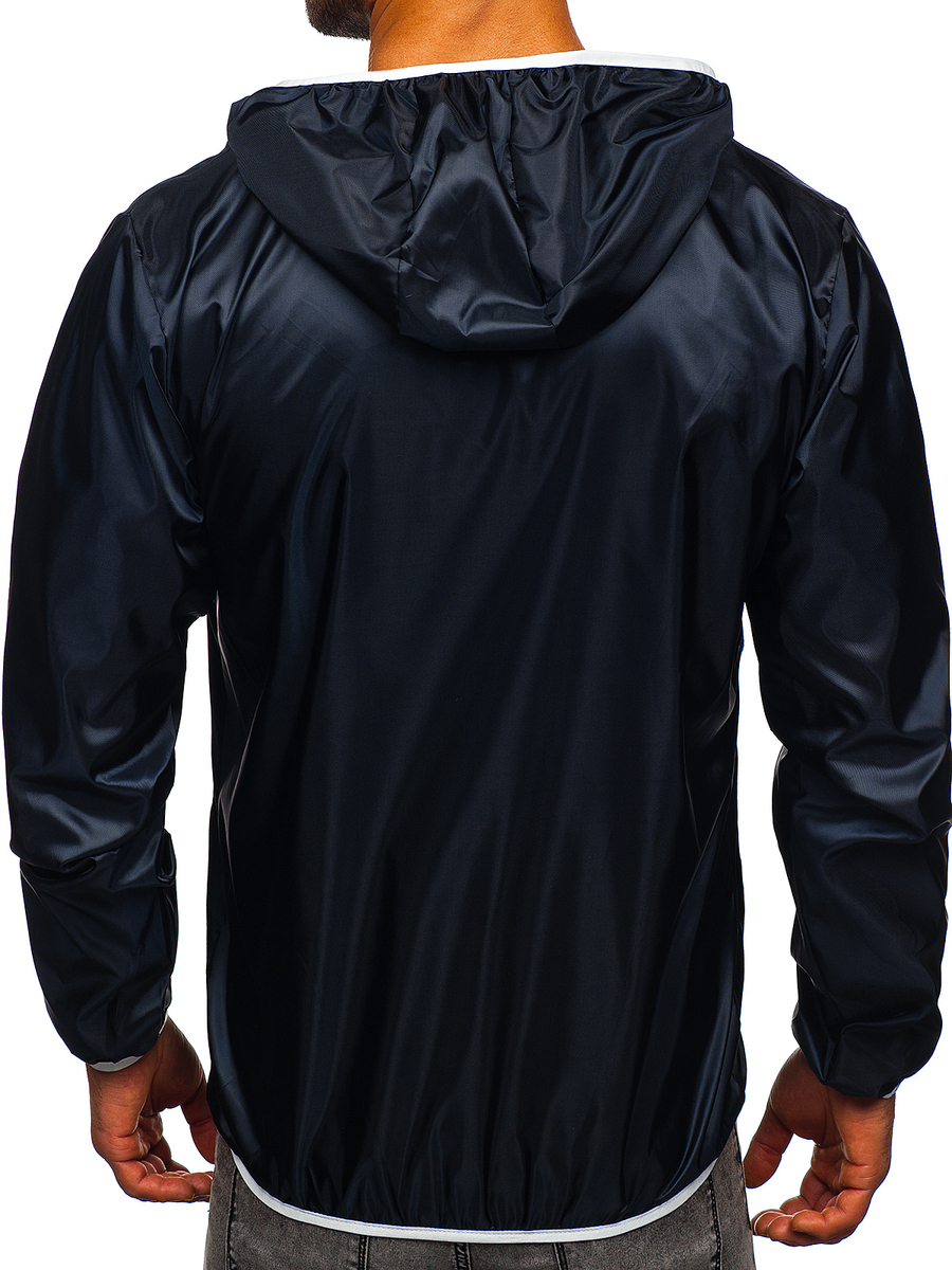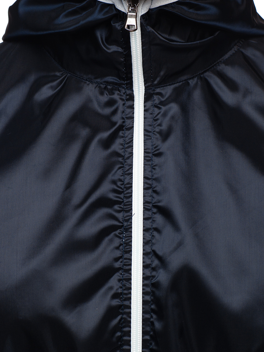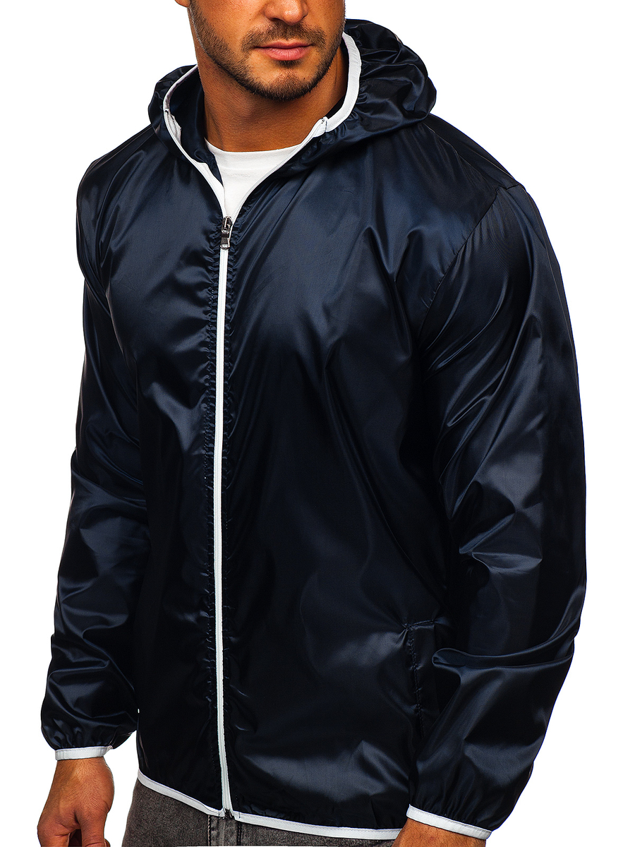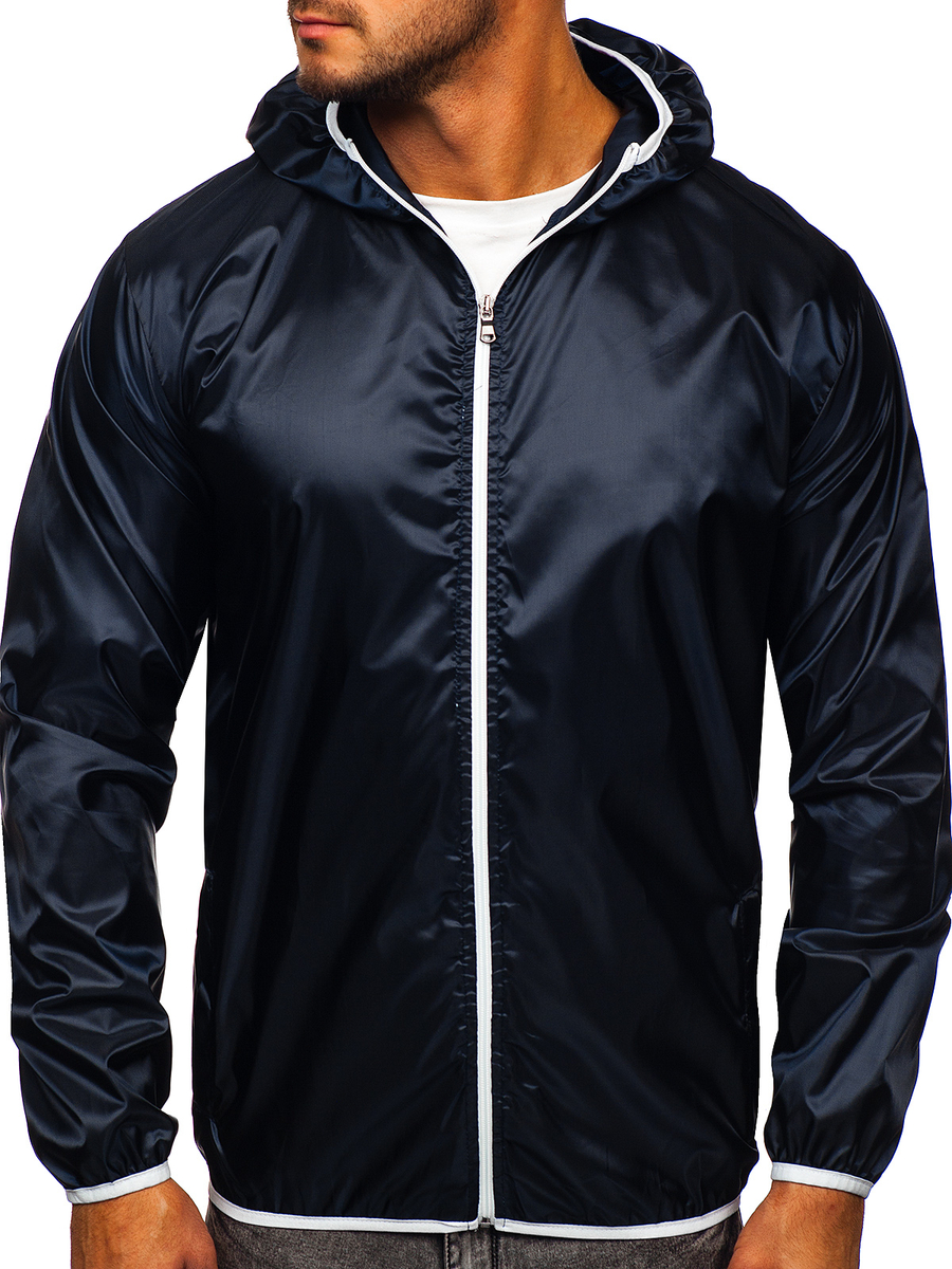 Gránátkék színű, átmeneti férfi dzseki Bolf 5060, egy univerzális cipzározható sportos dzseki. Dzseki, tökéletes védelem az eső és a szél elől. 100%-os vékony poliészterből készült. Húzózsinórral állítható, egyszínű kapucnival és két külső zsebbel. A dzseki ujjai vékony szűkítővel és szegéllyel végződnek.