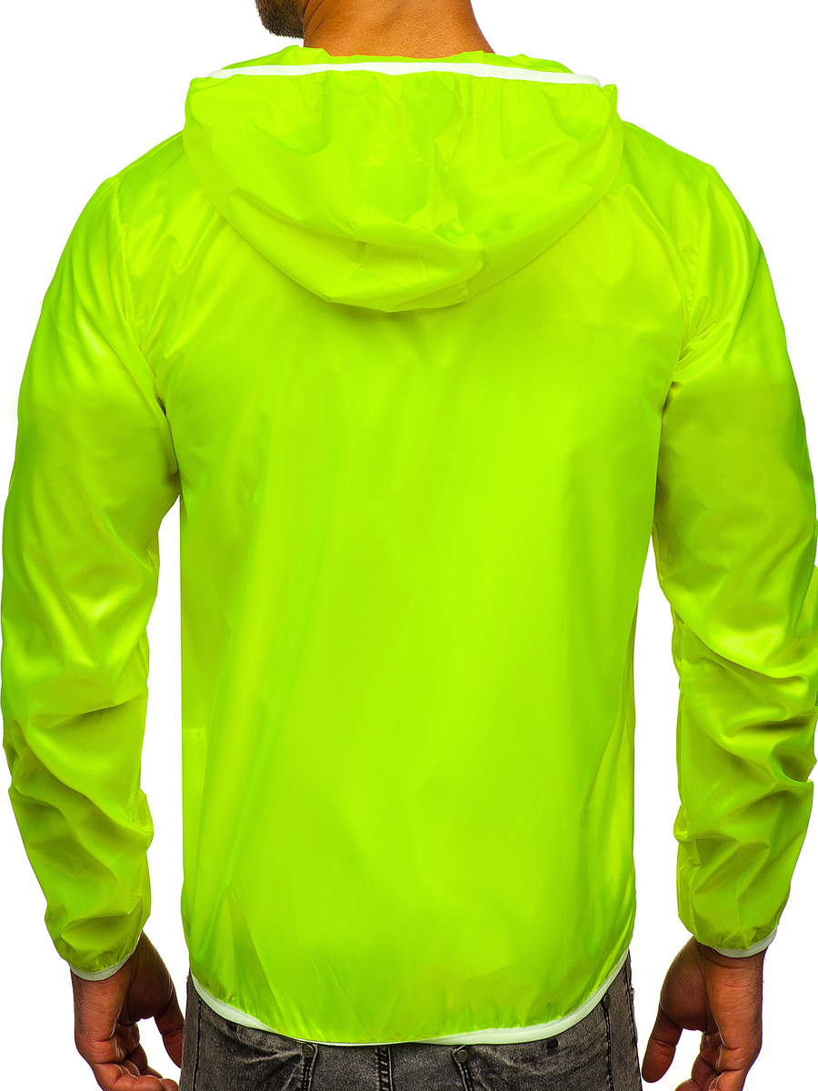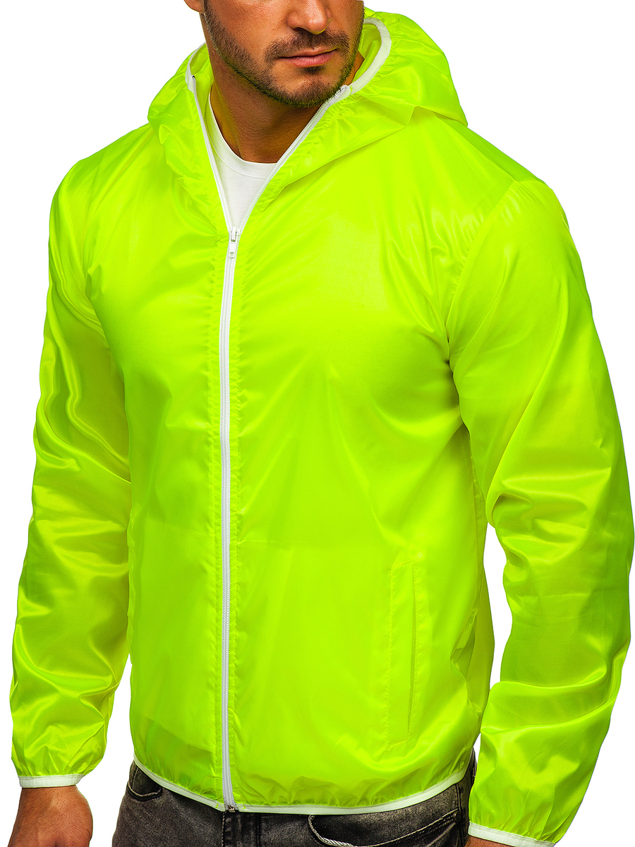 Sárga-neon színű, átmeneti férfi dzseki Bolf 5060, egy univerzális cipzározható sportos dzseki. Dzseki, tökéletes védelem az eső és a szél elől. 100%-os vékony poliészterből készült. Húzózsinórral állítható, egyszínű kapucnival és két külső zsebbel. A dzseki ujjai vékony szűkítővel és szegéllyel végződnek.