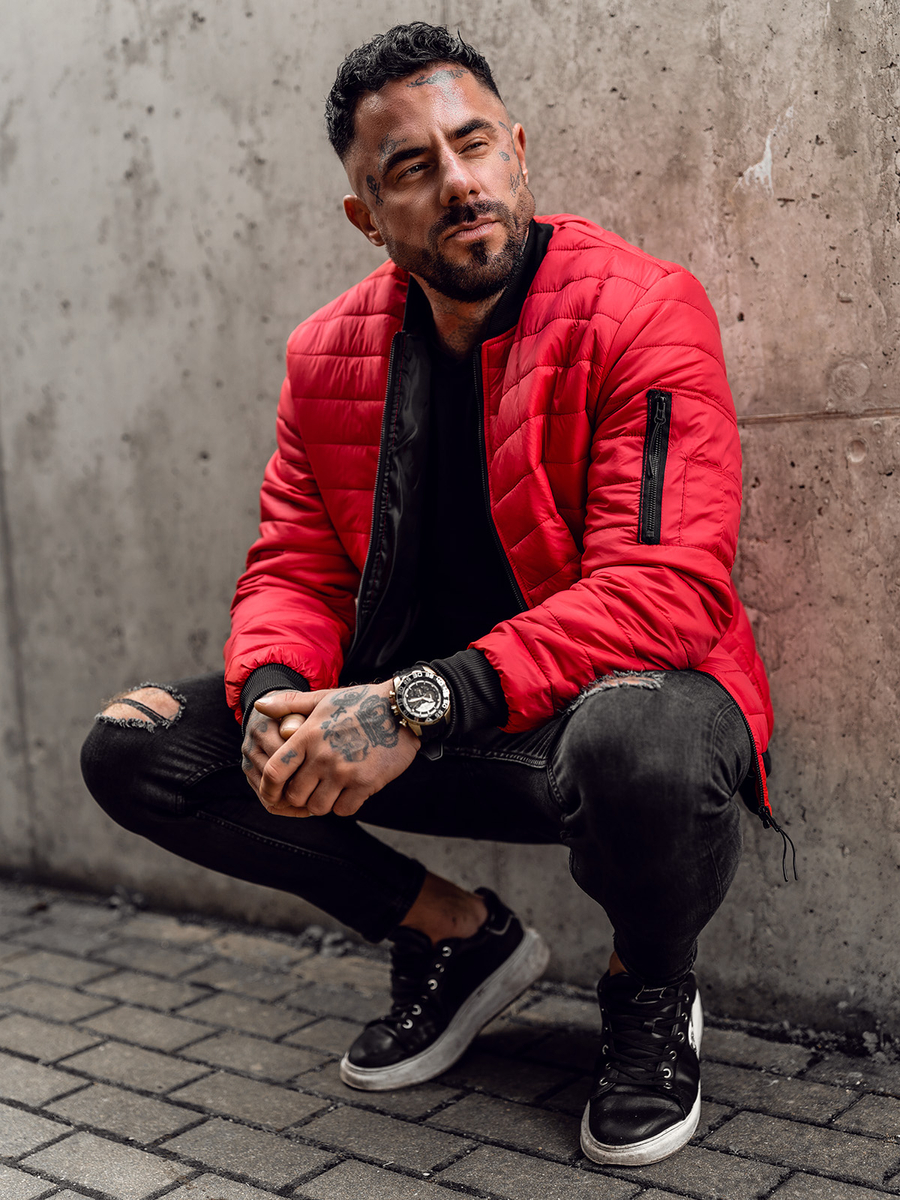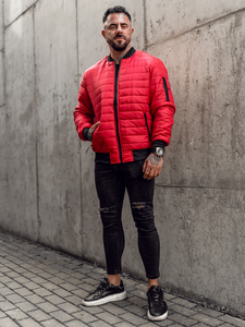A felhasználók véleménye Átmeneti steppelt férfi bomber dzseki piros Bolf MY-02
