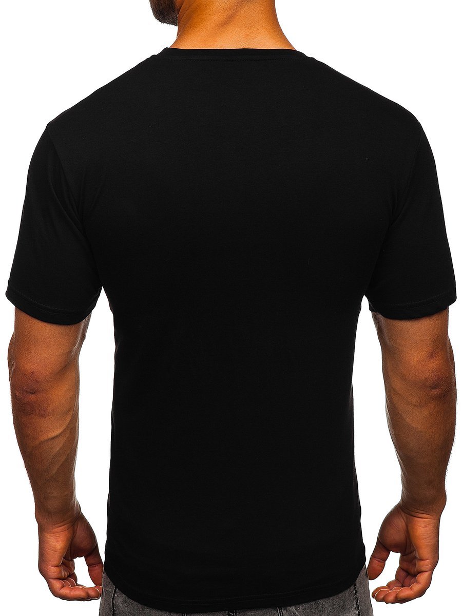 Mintás férfi póló -Bolf 142176- nagyszerű ajánlat azoknak a férfiaknak, akik értékelik a jó kinéztetet és a stílust. Kellemes tapintású pamutból készült, kényelmes, nem akadályoz a mozgásban. Kerek dekoltázzsal, a testhezálló fazonnak köszönhetően nagyszerűen kiemeli az alakot. Az elülső nyomat nem csak egyedi, de strapabíró is, aminek köszönhetően sok mosás után sem fakul ki. A póló könnyen kombinálható más ruhadarabokkal. Passzol katonai nadrághoz, vagy rövidnadrághoz.