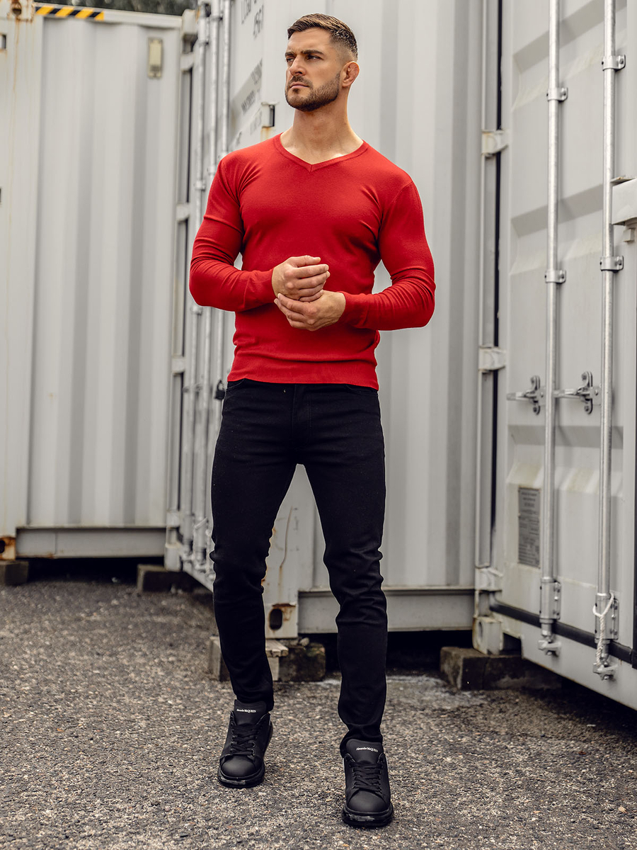 A felhasználók véleménye V-nyakú férfi pulóver piros Bolf YY03