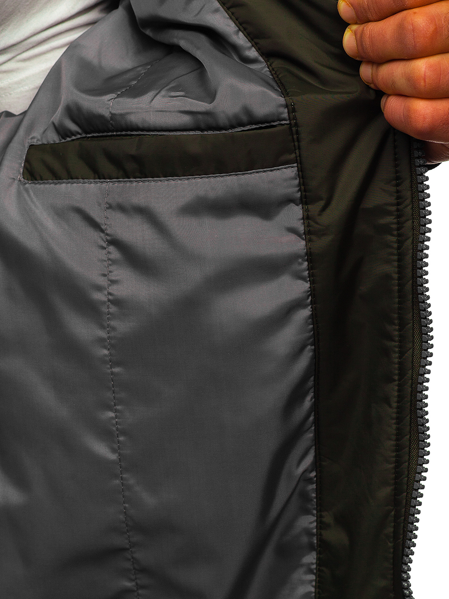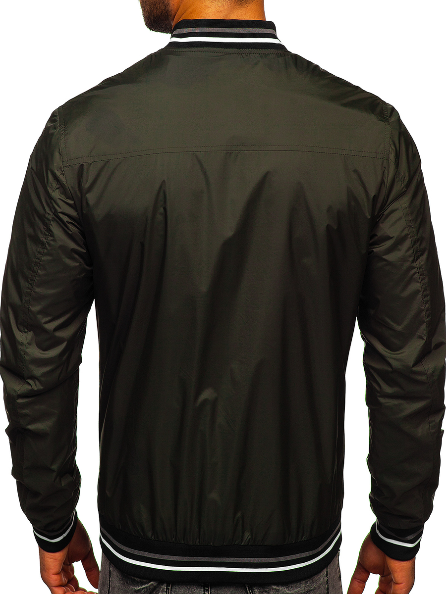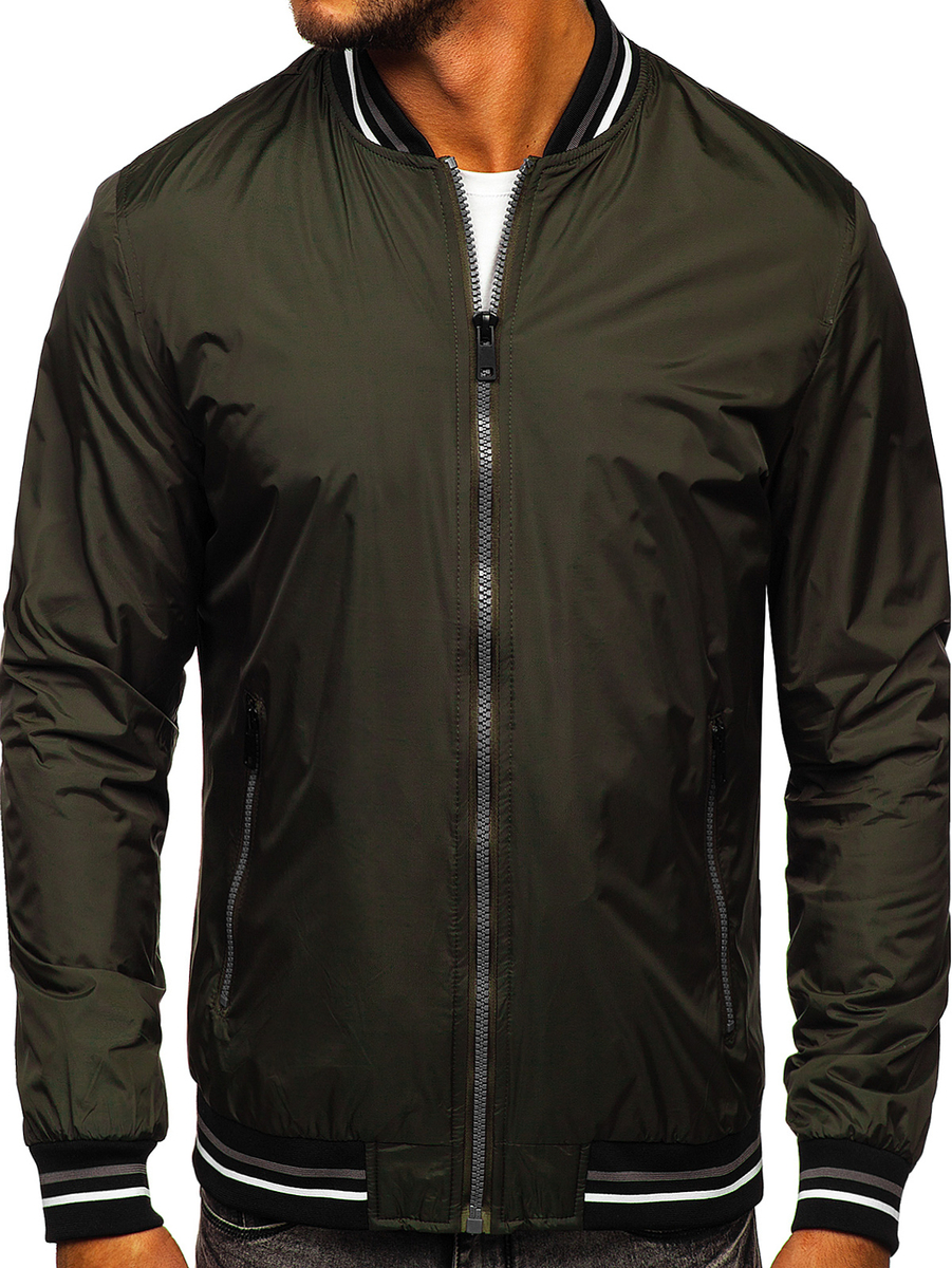A Bolf 6523 khaki férfi átmeneti bomberdzseki elegáns csíkokkal rendelkezik a galléron, az ujjakon és az aljánál, amelyek jellegzetes harcias stílust kölcsönöznek neki, és sporttermékre emlékeztetnek. A kabát nagyon eredeti dizájnnal rendelkezik. Cipzárral zárható, praktikus felálló gallérral és mutatós passzéval van ellátva. Jól mutat nem formális hétköznapi stilizációkban, nagyszerű kiegészítése a streetes outfitteknek is. Két külső zsebbel és egy belső zsebbel rendelkezik. Az oldalsó zsebek cipzárral vannak ellátva.