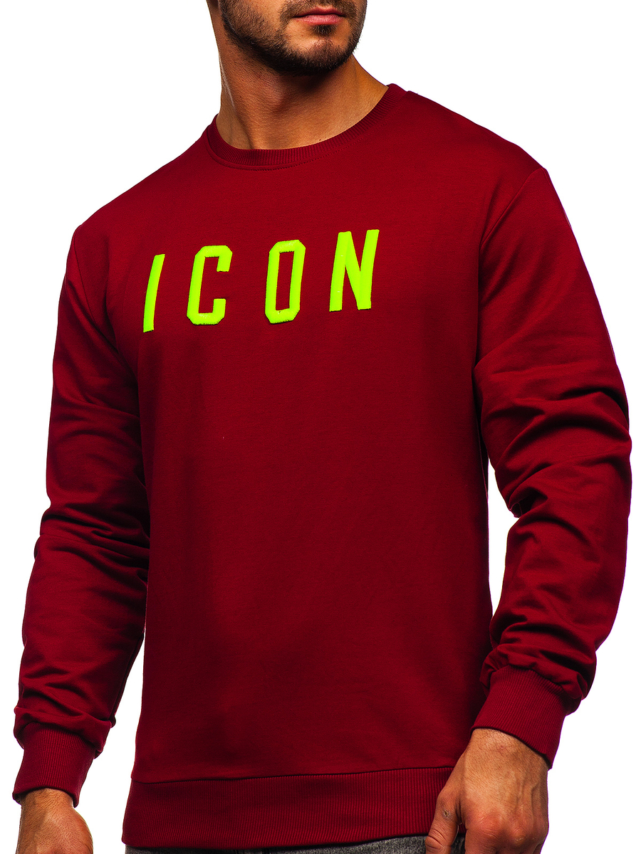 A felhasználók véleménye Kapucni nélküli bordó férfi pulcsi hímzett 3D-s mintával Bolf 146176