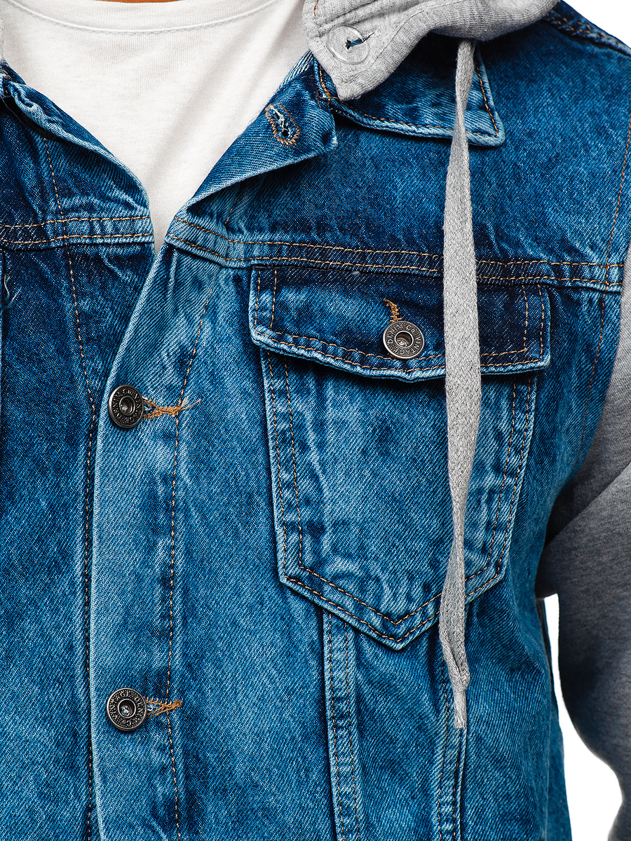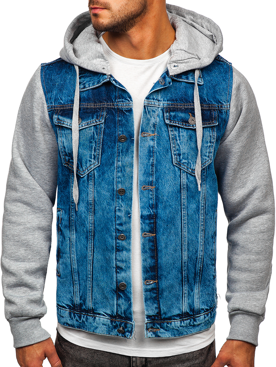 A felhasználók véleménye Férfi farmerdzseki kapucnival gránátkék színben Bolf 211902